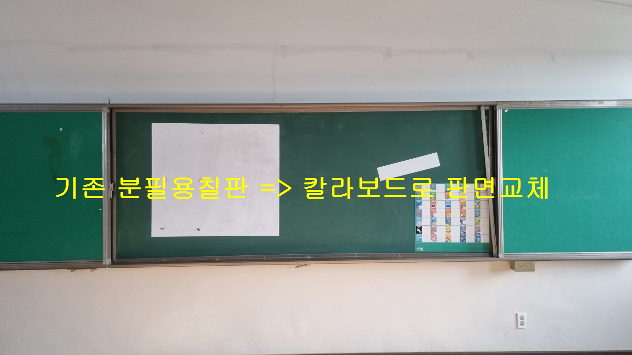 이천율면초등학교- 미닫이칠판의 본칠판(칼라보드)교체 - 119*300.5cm실