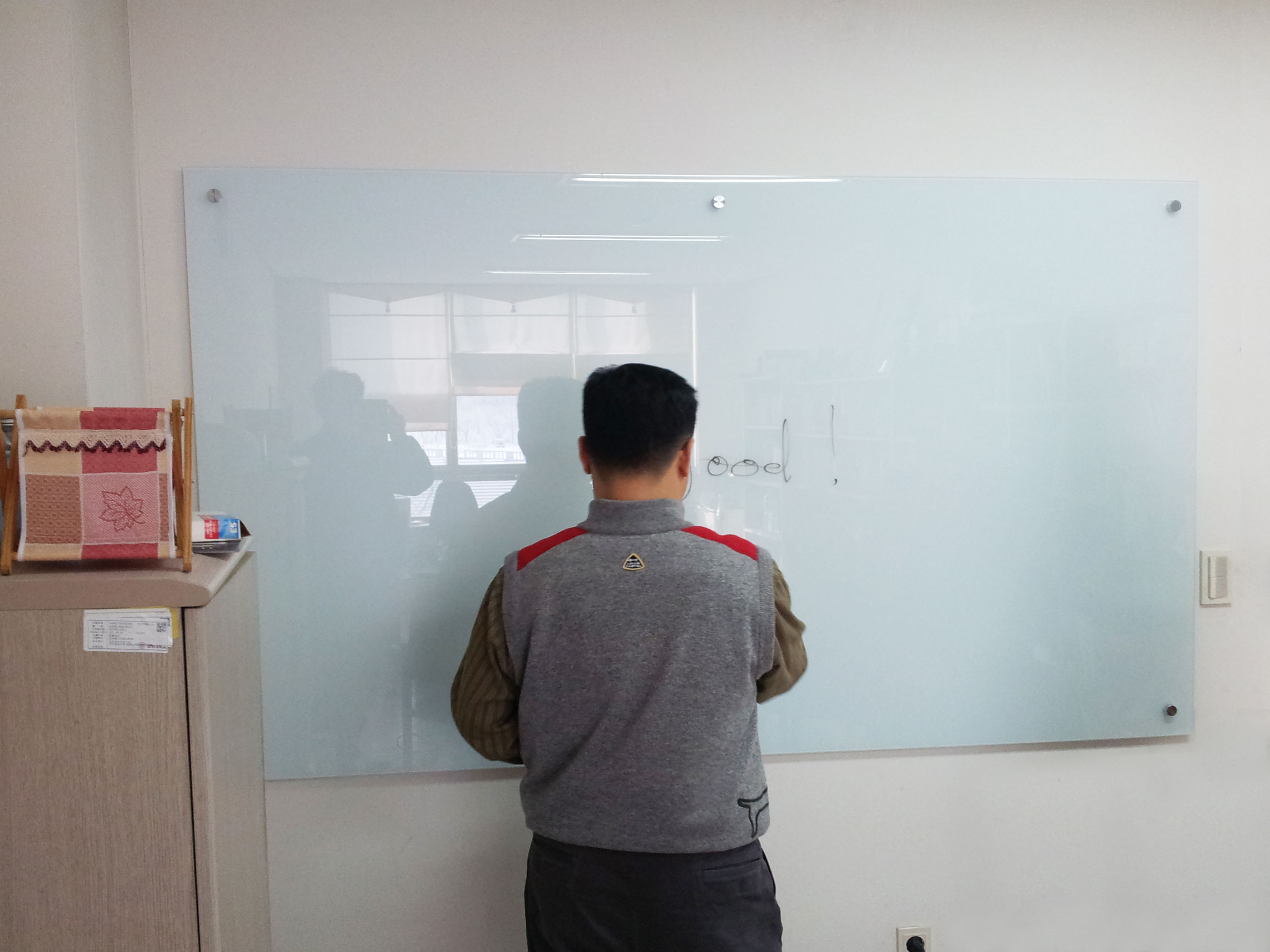 경희대학교국제캠퍼스 자석 화이트유리 인테리어칠판 120*200 관리자 2015-05-14 관리자 글라스유리칠판 0 3598 2015.05.14 08:03 경기 용인시 기흥구 소재 경희대학교국제캠퍼스 전자정보대학 에 설치해드린 자석 화이트유리 인테리어칠판 120*200 제품의 모습입니다. 고객분께서 직접 제품에 보드마카로 글씨를 써보고 계시는 모습입니다