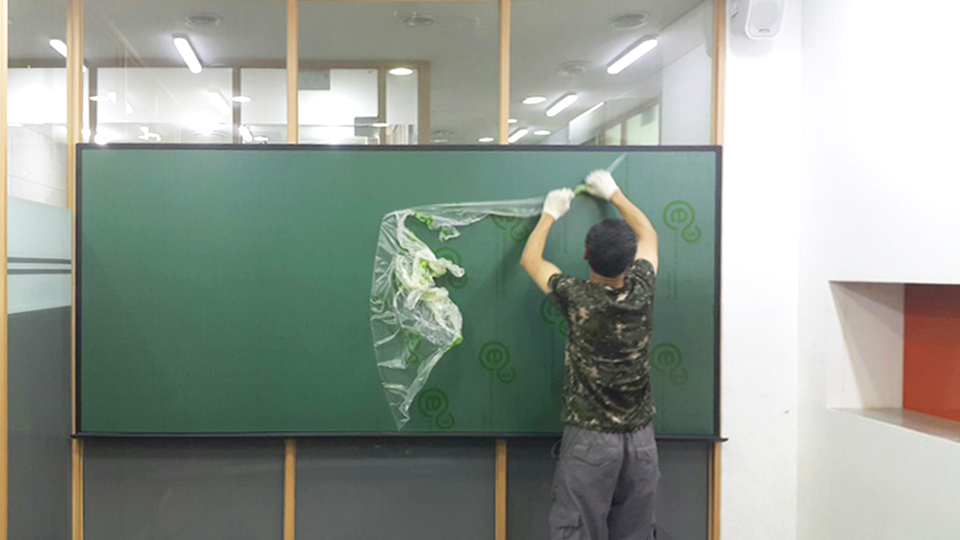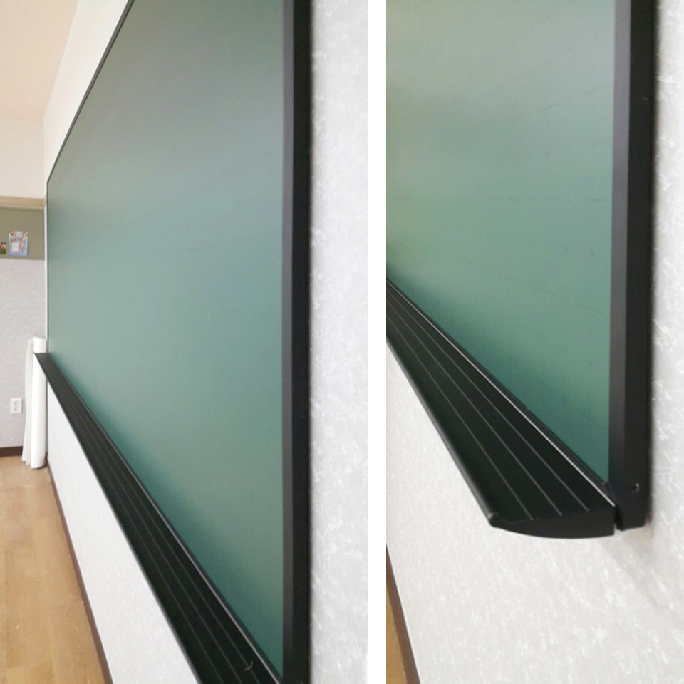 블랙 UK펜받이는 full size로 제작, 칠판의 하단으로 부착해드렸습니다.