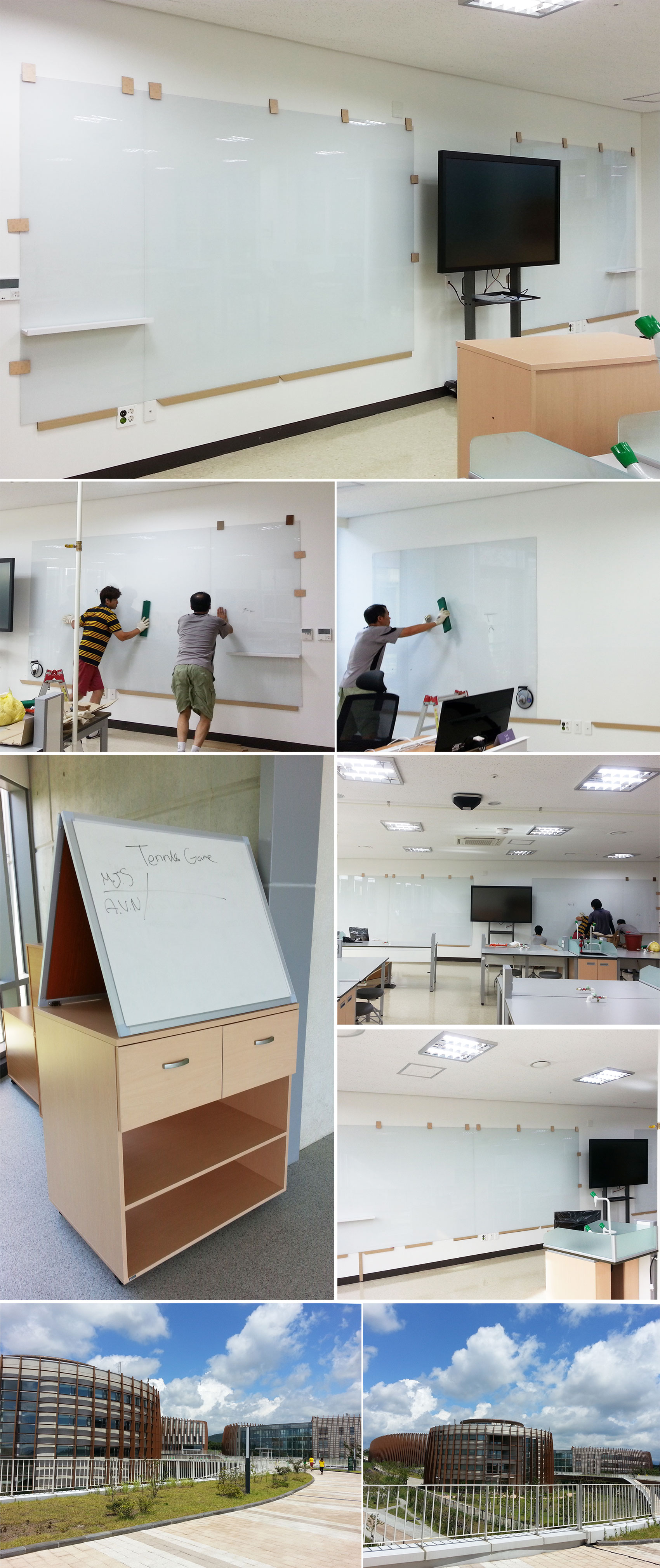 설치해드린 자석 화이트유리 제품의 모습입니다.