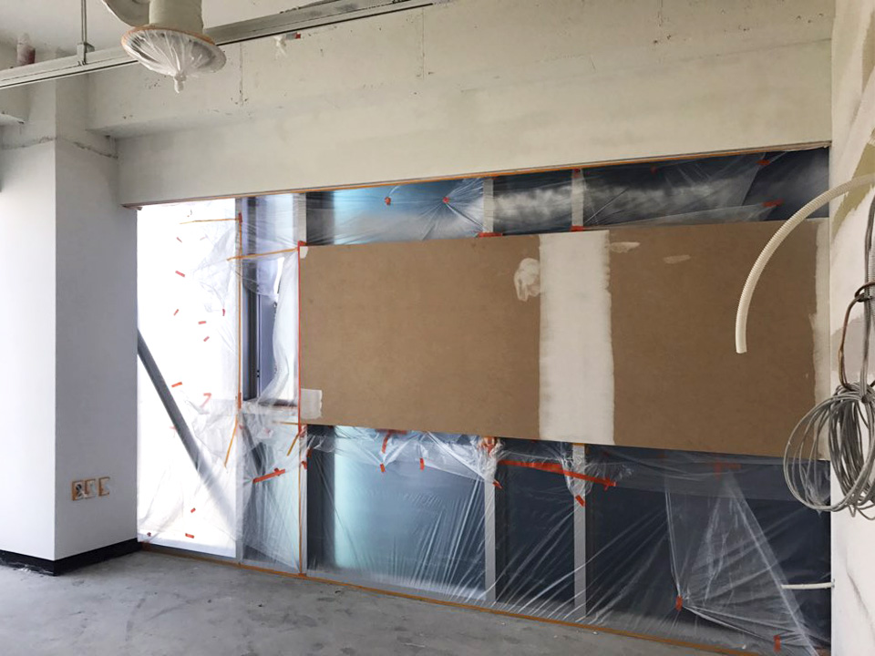 업체에서 칠판을 부착할 수 있도록 미리 보강공사를 해 놓으셨습니다.