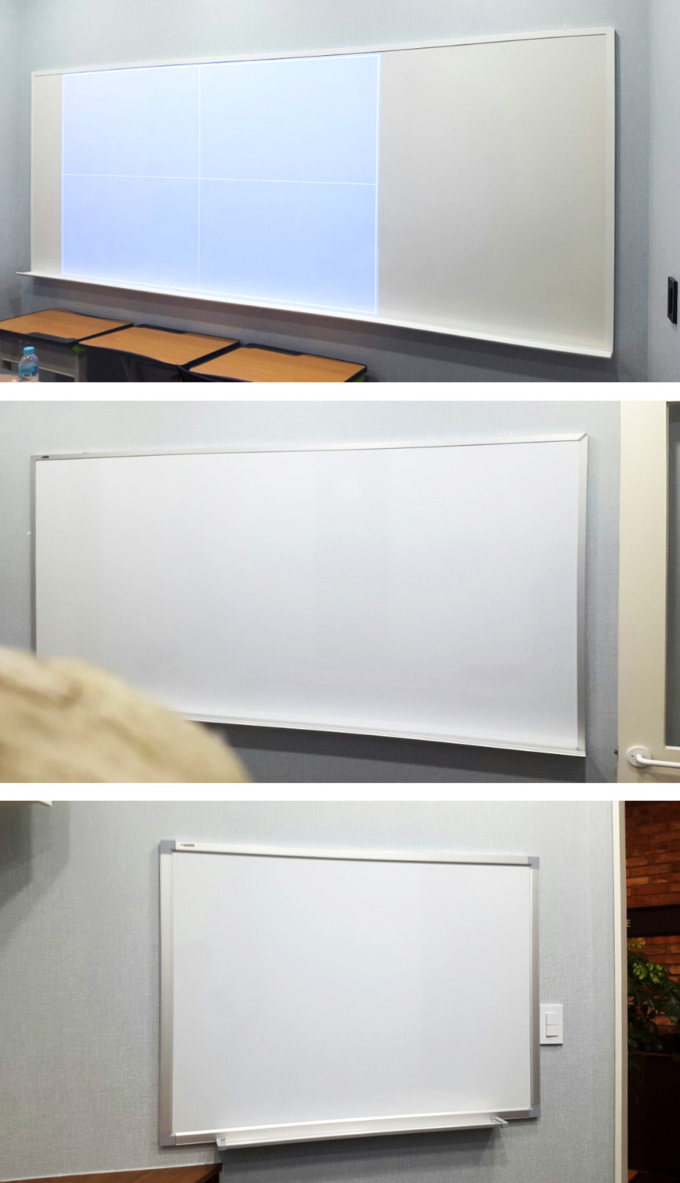 법랑(반무광) 화이트UK 120*300 / 자석화이트 실버UK 120*220 / 일반A/L 80*110 제품들입니다.