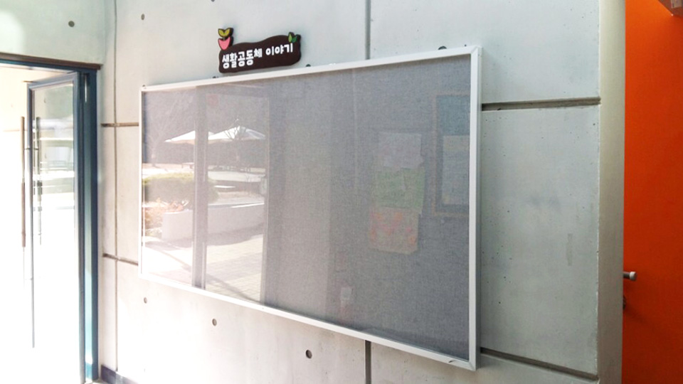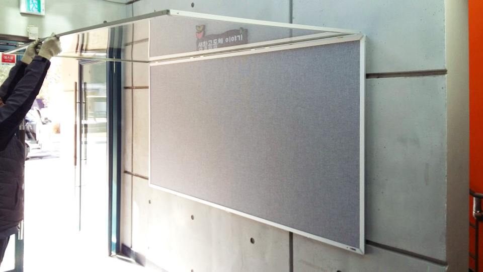 자석파티션 게시판으로 상하로 열리도록 제작되었습니다.