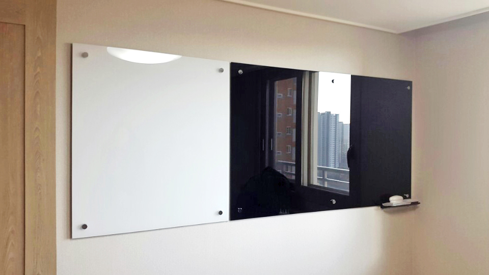 자석화이트유리 90*80 / 자석블랙유리 90*150 인테리어칠판 제품의 모습입니다.