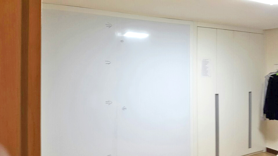자석화이트 속판 218*221.5 + 화이트 편몰딩 제품의 모습입니다.