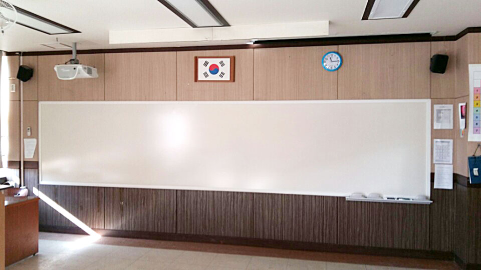 펜받이는 100cm 로 제작, 칠판의 하단 벽면에 부착해드렸습니다.