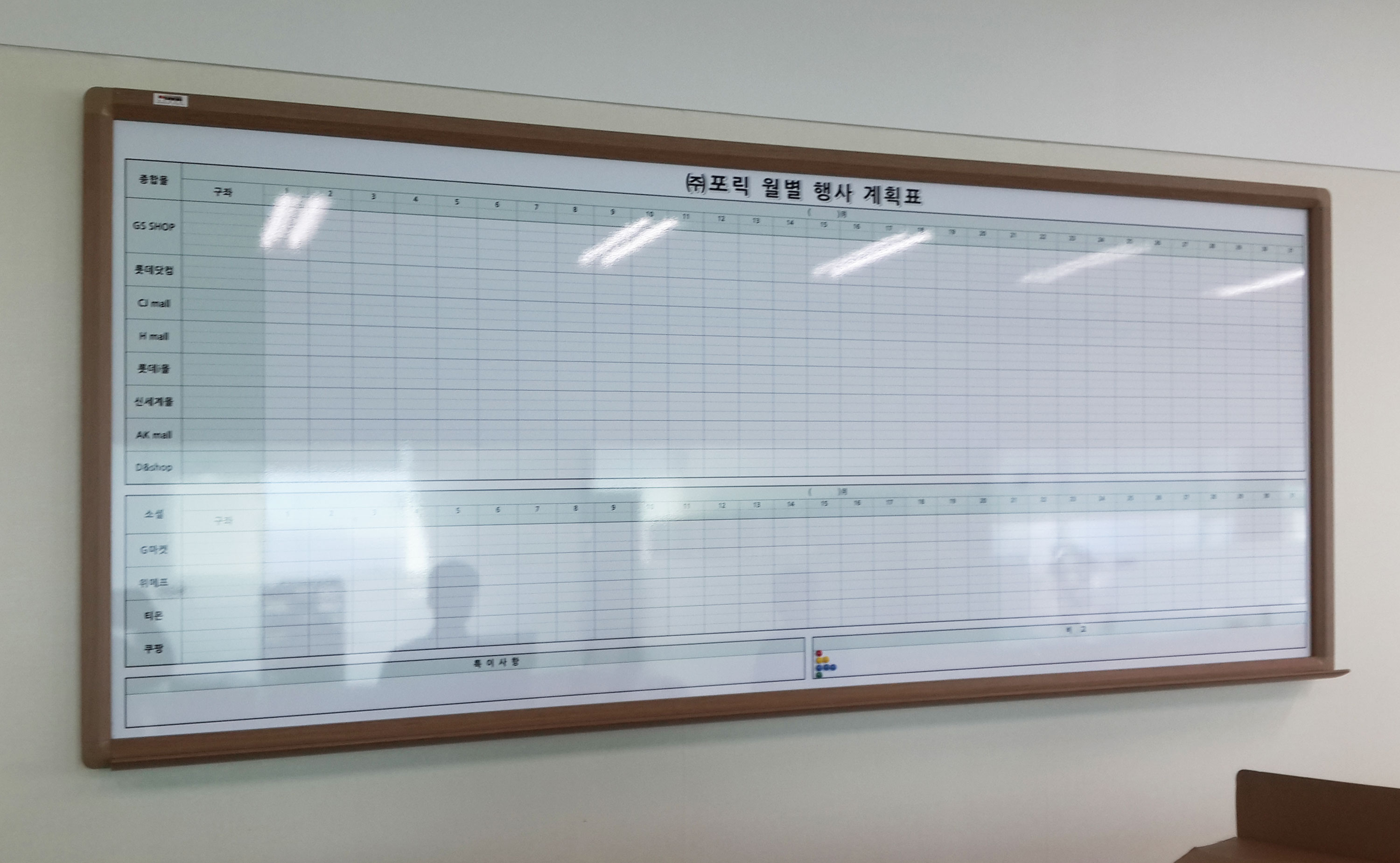 (주)포릭 자석 화이트 도안칠판 오크A/L 126*300