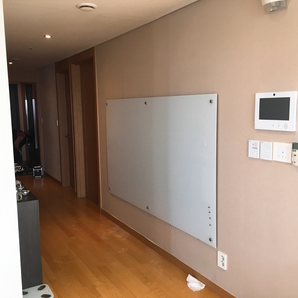 아파트에 설치 된 -자석화이트유리 인테리어칠판-120*210