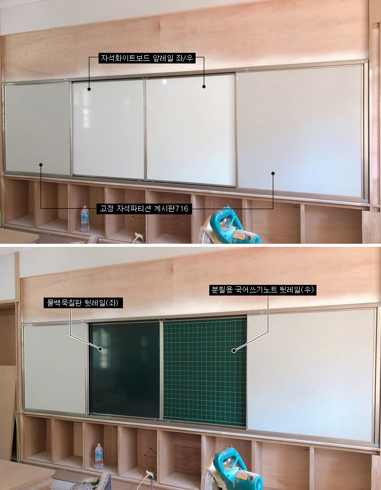 ▲미닫이 칠판 레일 모습