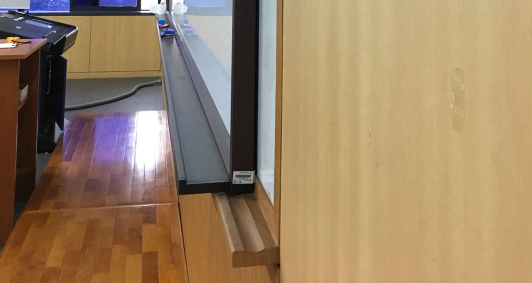 기존 벽면 붙박이형 칠판 규격으로 제작하여 덧대어 설치해 드렸습니다.