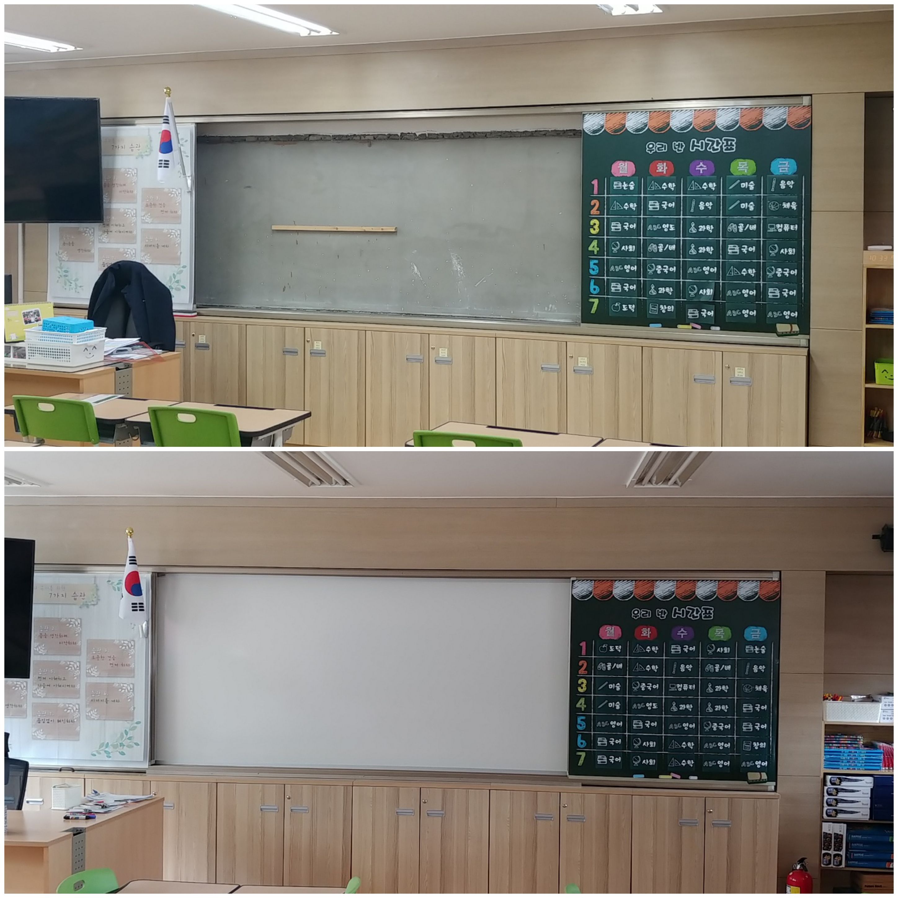심석초등학교-전학년 미닫이칠판 본칠판 교체 작업 (법랑반무광화이트보드 실버UK 121*361cm외) 서브관리자2 2019-04-13 서브관리자2 기능성칠판(미닫이/업다운) 0 2567 2019.04.13 01:26