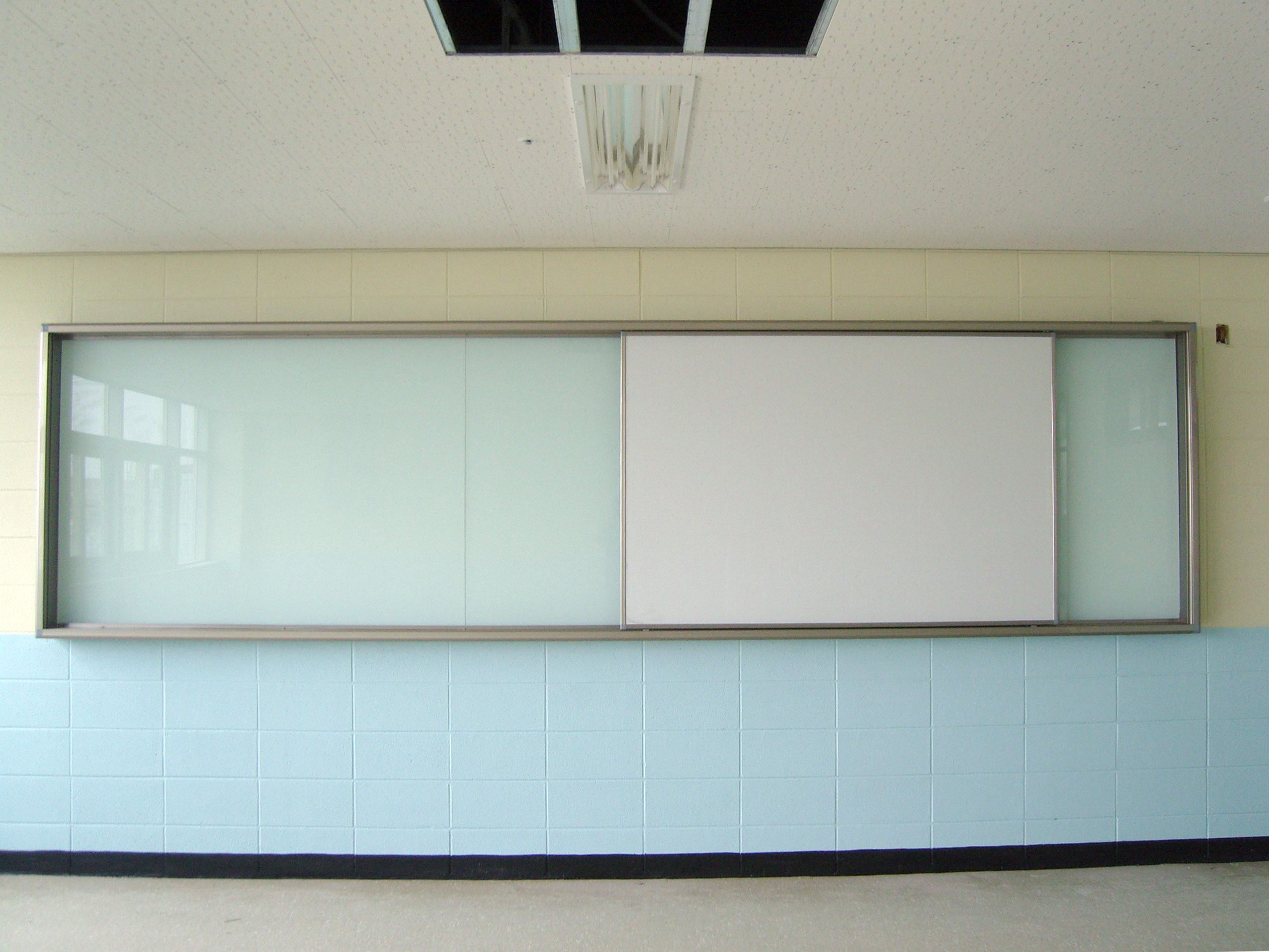 - 미닫이구성 : 본칠판=화이트유리(가로300+171 연결설치) / 보조칠판=슬라이드 백스틸180