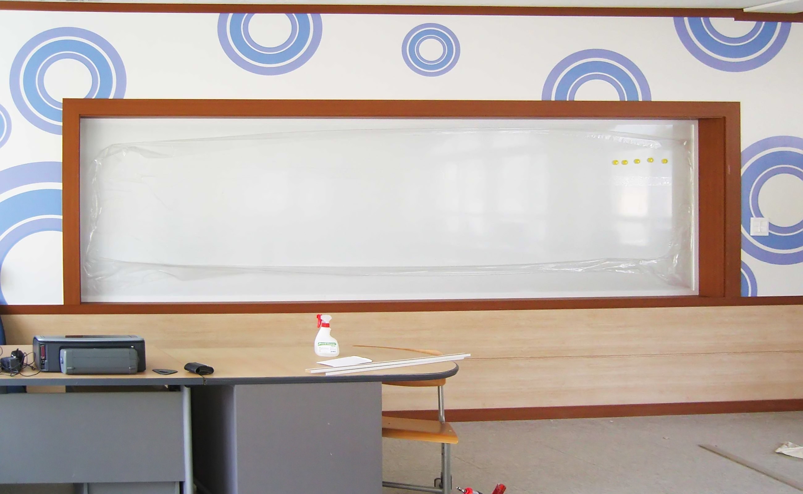 칠판설치후 가장자리를 흰색 쫄대로 마감하여 쫄대부분이 거의 표시나지 않도록 깔끔하게 처리 되었습니다