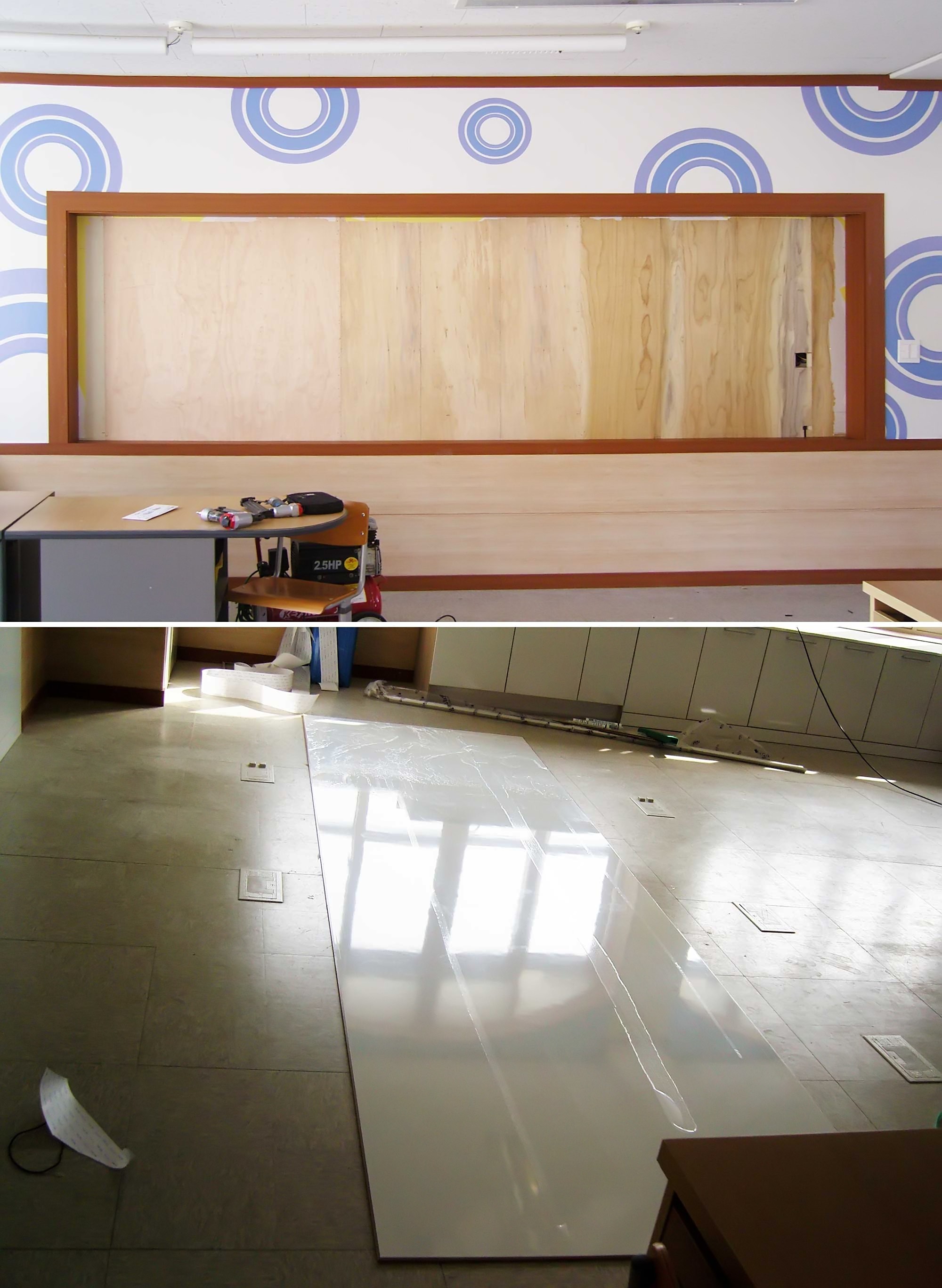 내부 인테리어로 칠판속판을 부착할 부분을 미리 목공작업해두신 상태여서