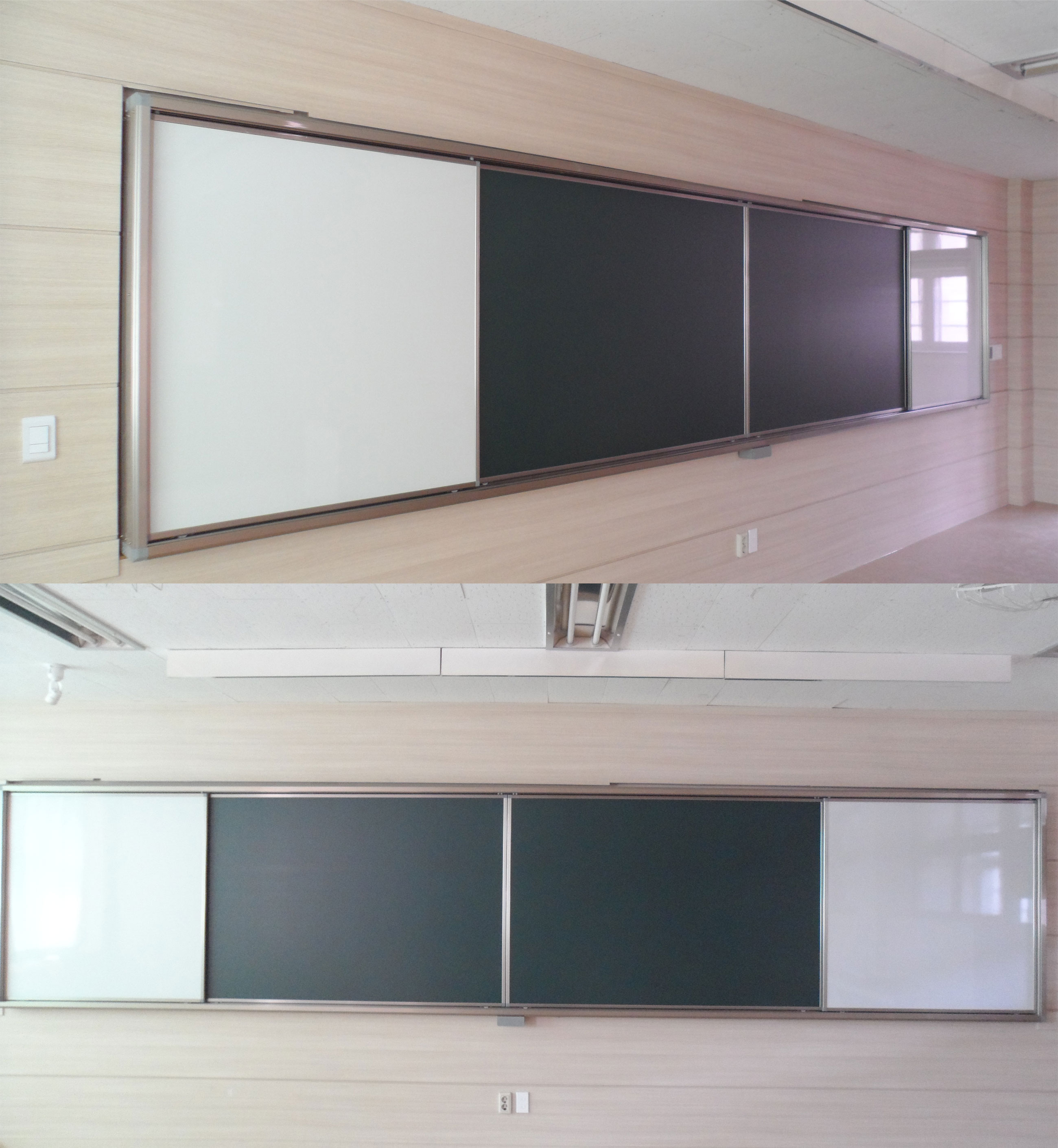 미닫이칠판 129.5*600 (3개) 제품 설치 모습입니다.