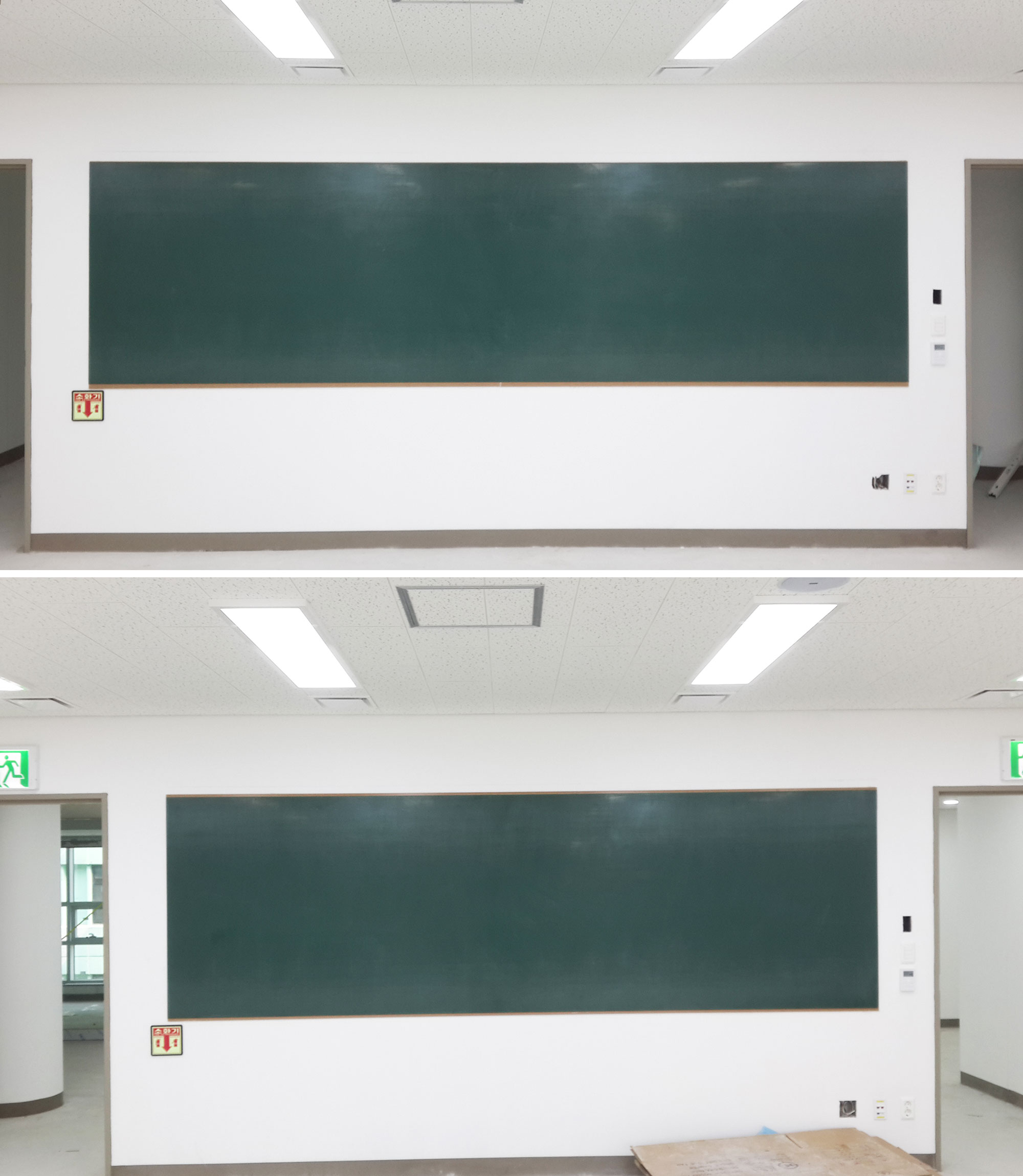 내부 인테리어로 칠판속판을 부착할 부분을 미리 목공작업해두신 상태였습니다.