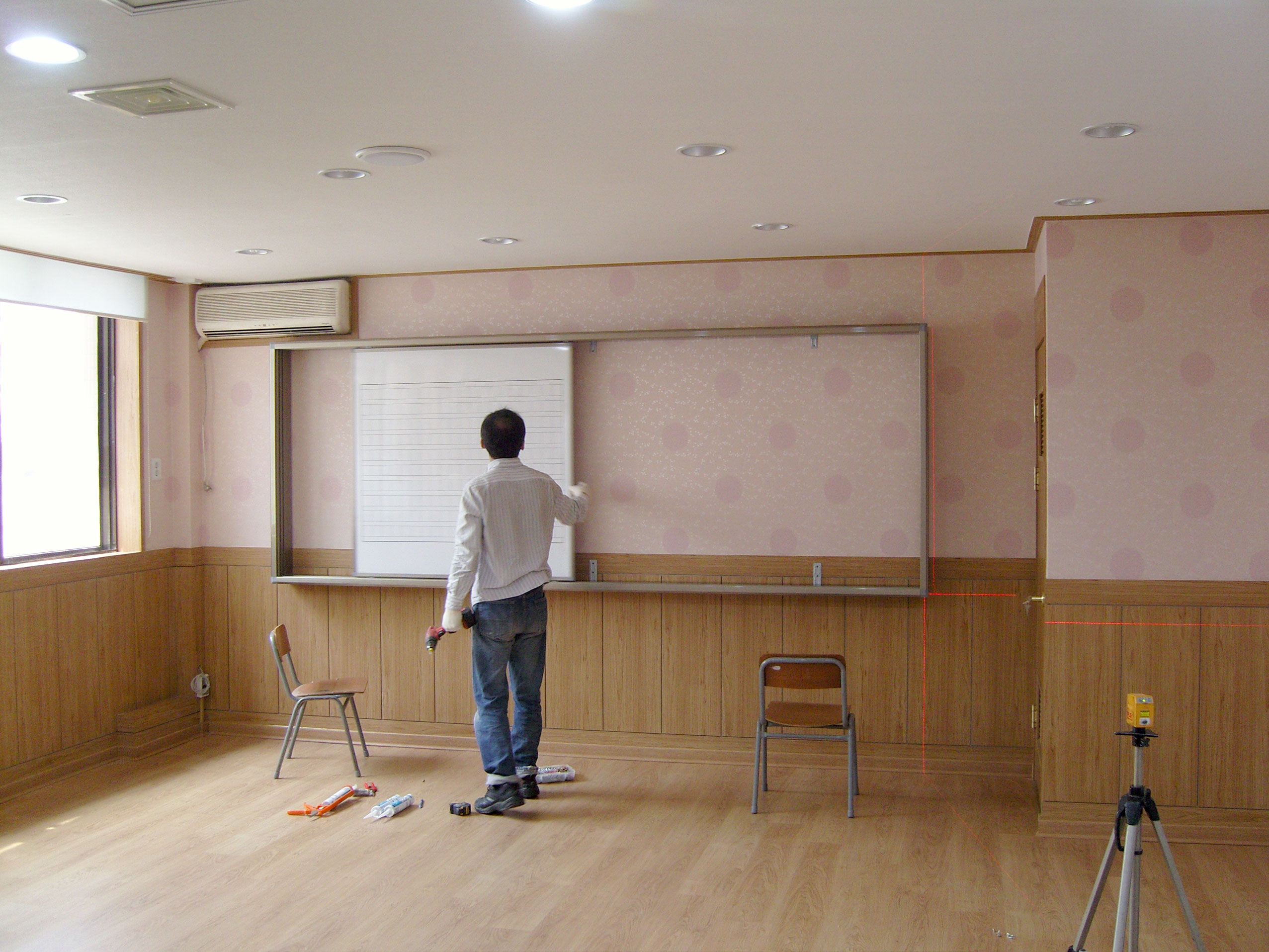[프레임설치후 슬라이드칠판 테스트 모습]