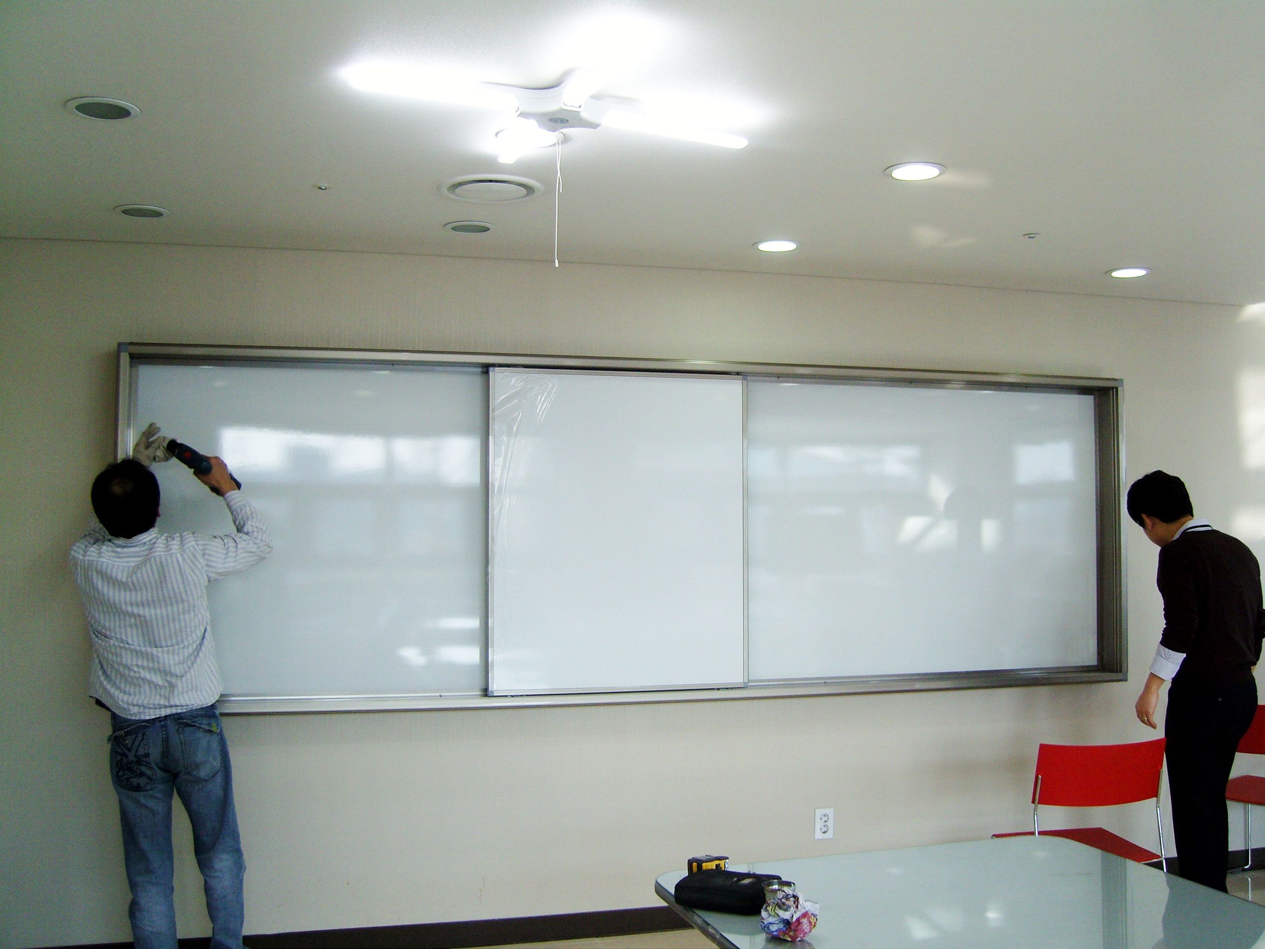 경기도 용인 소재 모나미에 설치해드린 미닫이 칠판 128.5*400 제품의 모습입니다