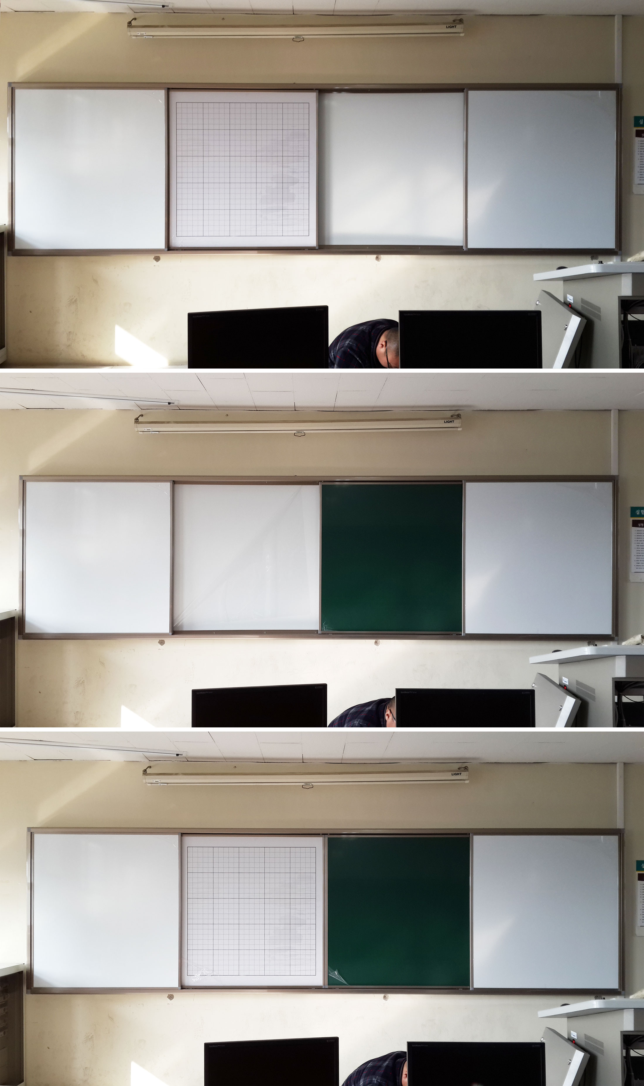 (본칠판=백스틸240 / 고정칠판=백스틸2장 / 슬라이드=백스틸도안(모눈)1장+청스틸1장