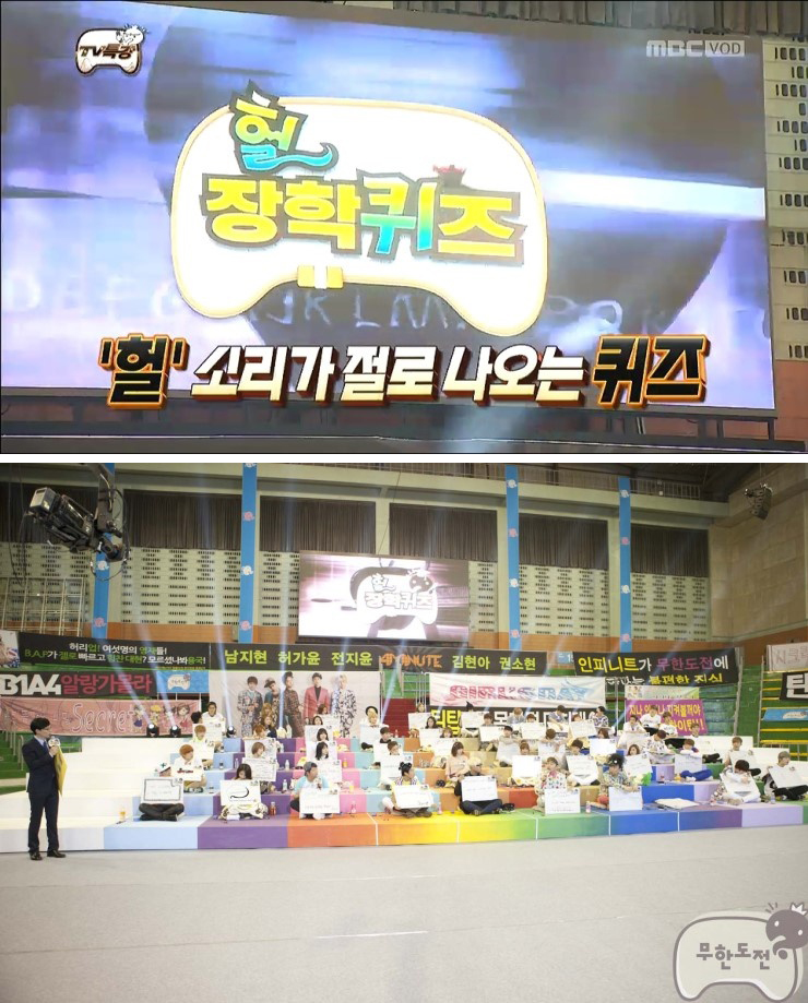 대표 아이돌인 샤이니, 포미닛, 인피니티 등 약 30여명의 아이돌들이 참석한 가운데 무한도전 한국사를 주제로 한국사 특강을 무한도전 멤버들이 진행했구요...