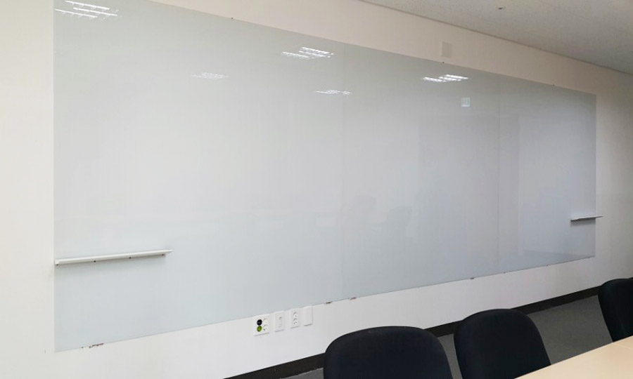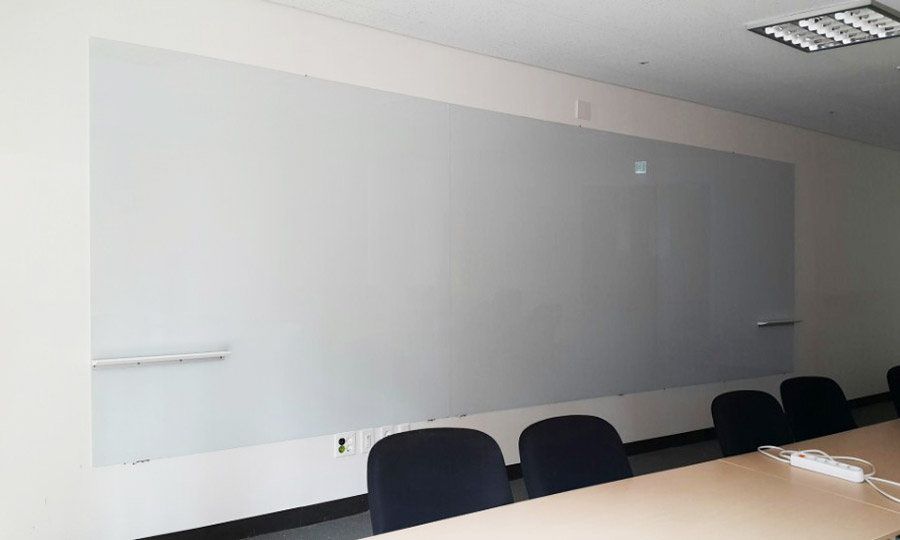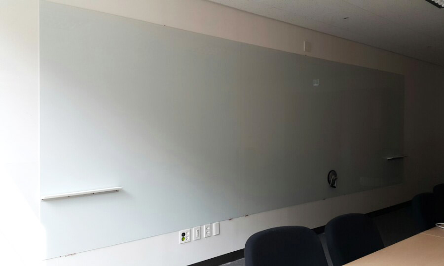 유리칠판 연결 설치 및 유리 위에 펜받이를 부착하는 까다로운 건이지만,