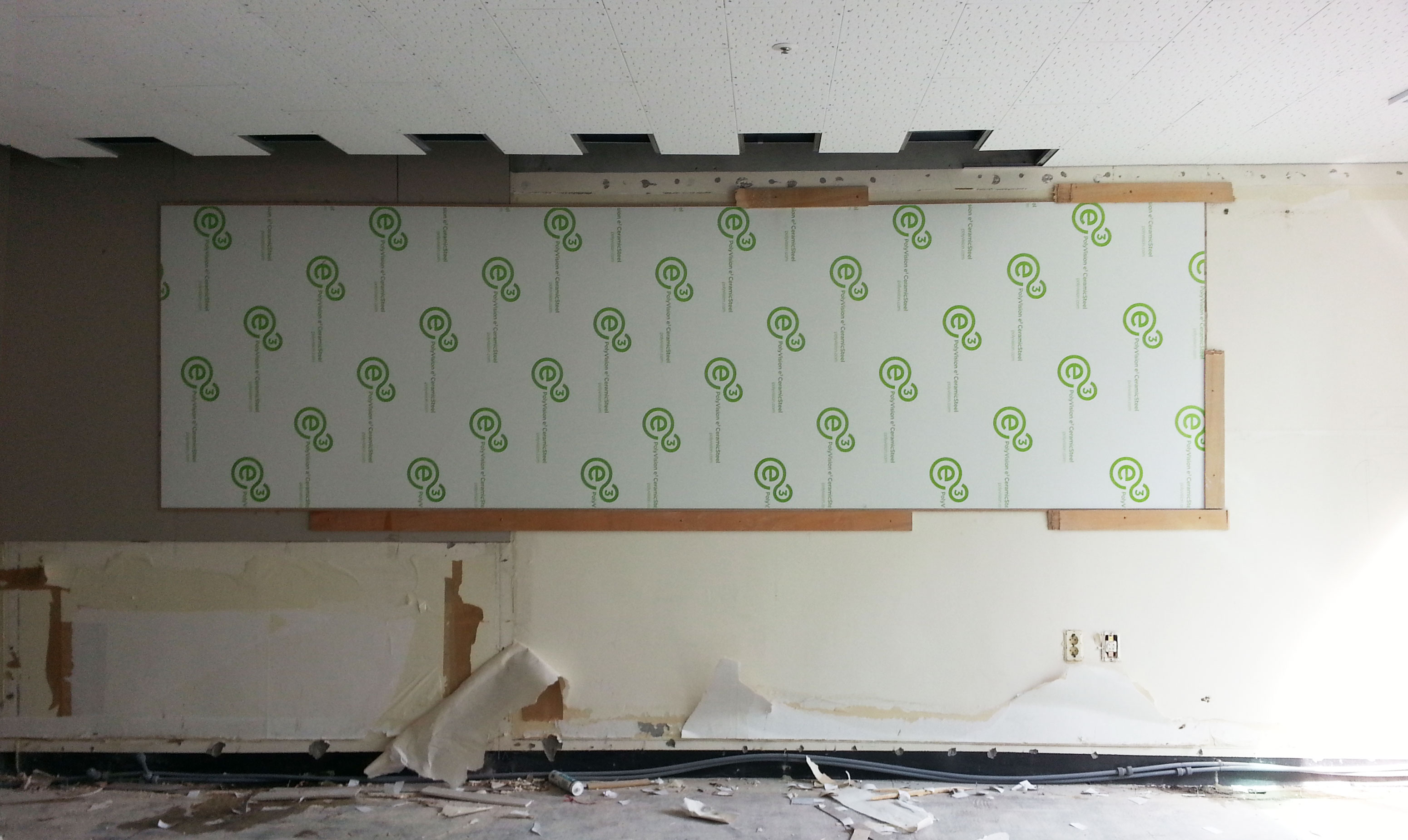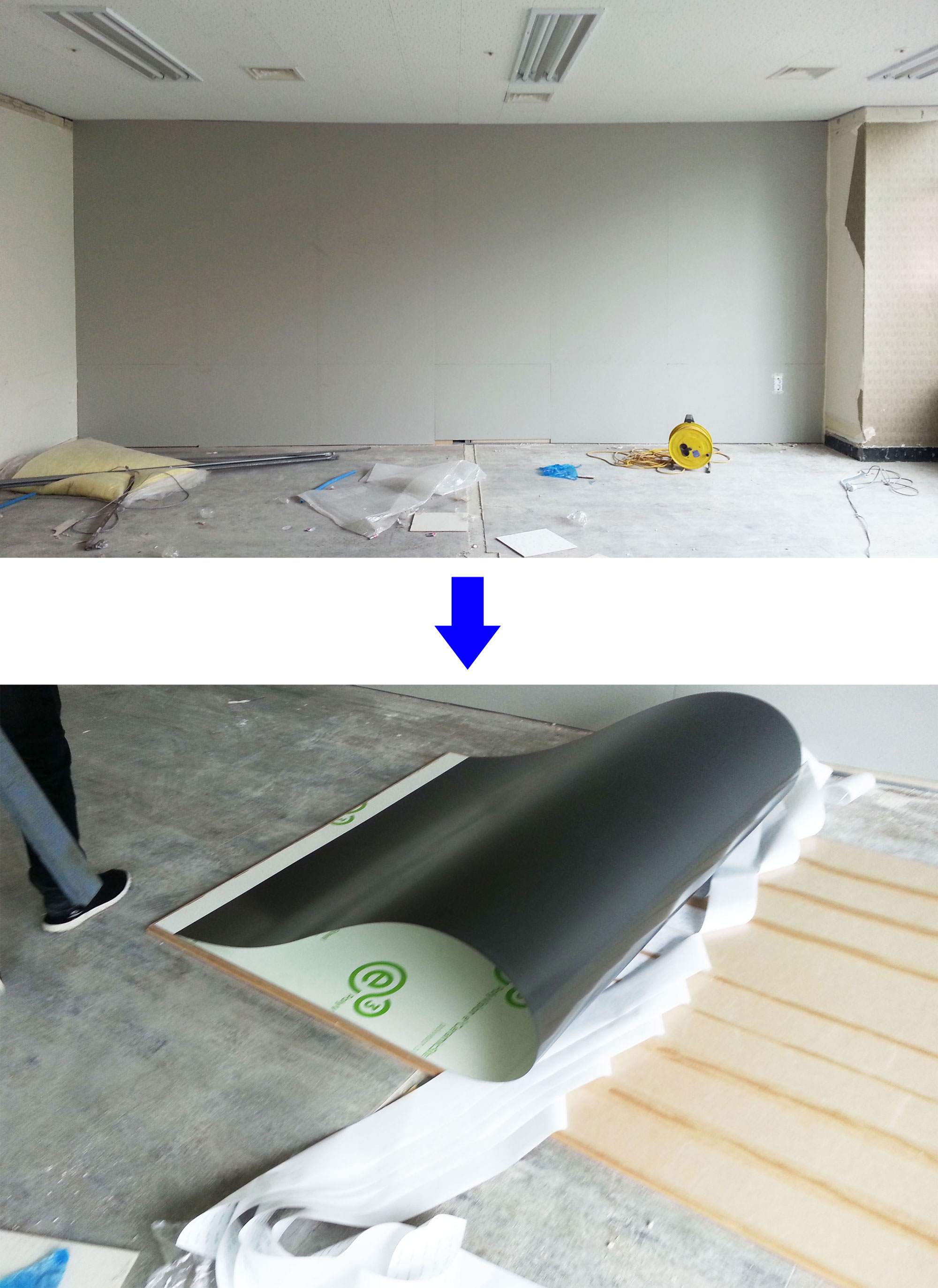 현장은 인테리어 공사중으로 원자재로 이동해서 현장에서 조립 후 벽에 부착해드렸습니다.