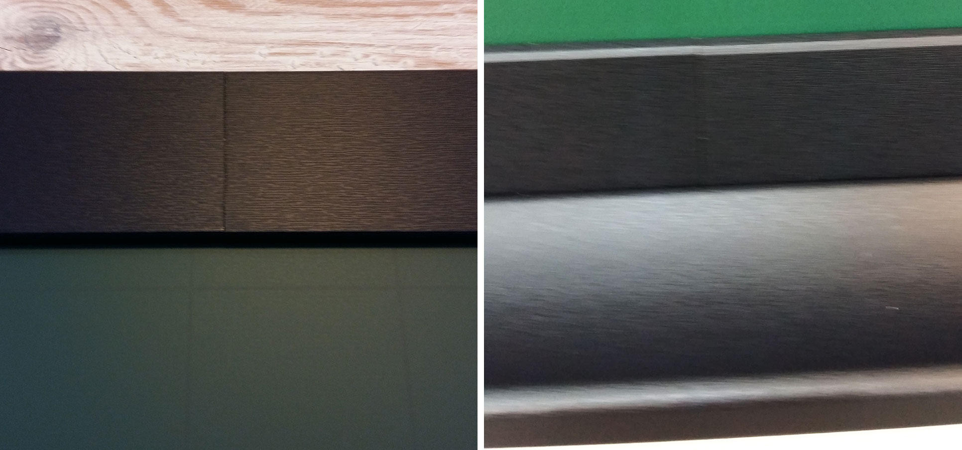 목재형 테두리제품의 경우 원자재(테두리)의 길이문제로 최대 가로사이즈는 270cm 까지 제작 가능하며, 이번 설치현장과 같이 270cm 가 넘는 경우 테두리를 연결하여 제작하므로 이음새 부분이 있습니다.