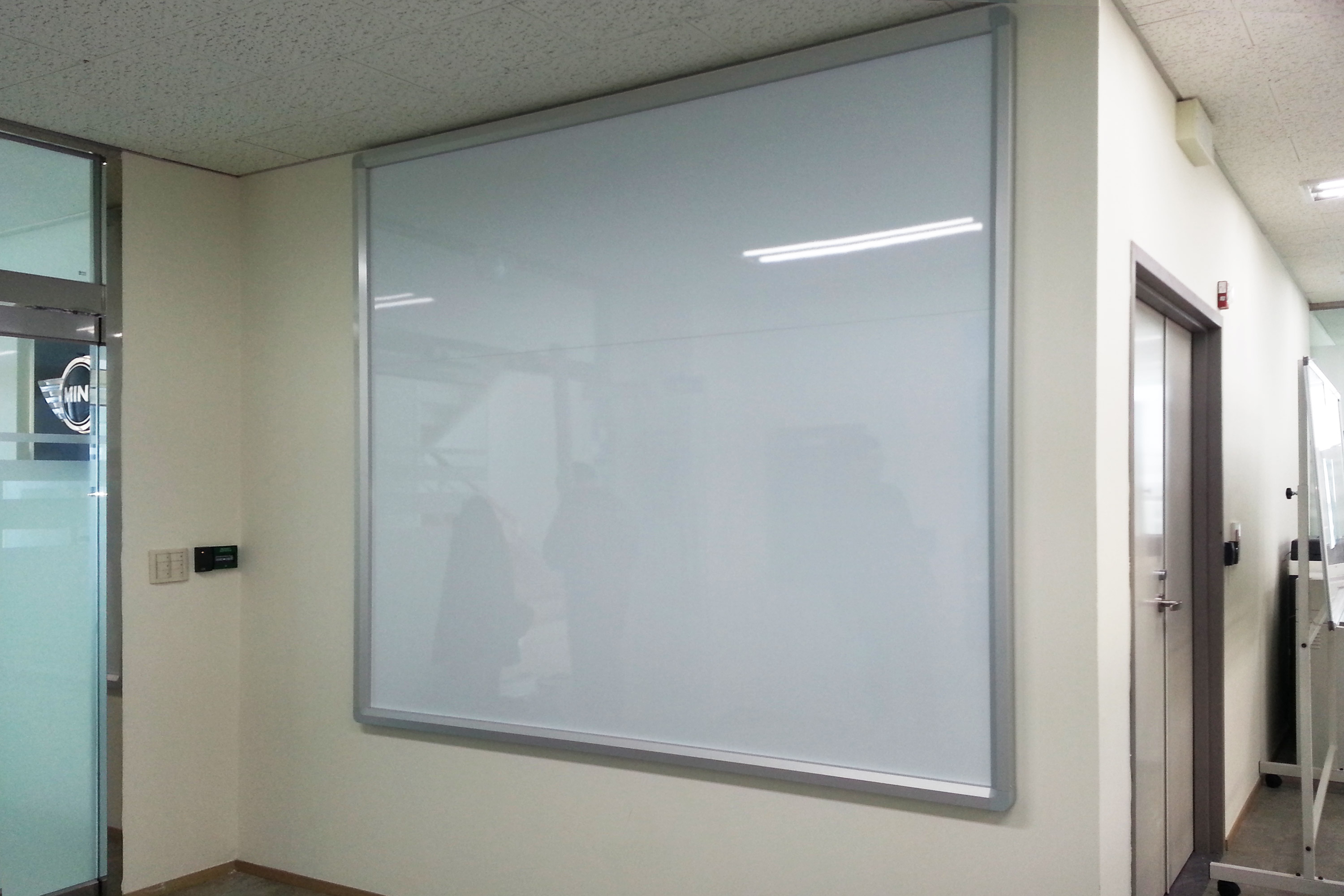 칠판의 높이가 200cm 로 상.하 2장을 연결제작해서 상단부분에 이음선이 있습니다.
