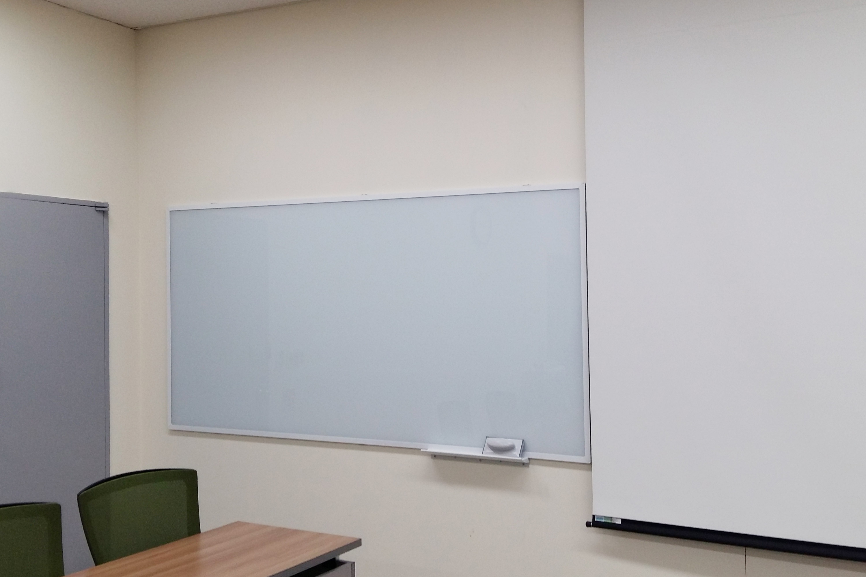 UK펜받이는 유리칠판의 오른쪽 하단부분 벽면에 부착해드렸습니다