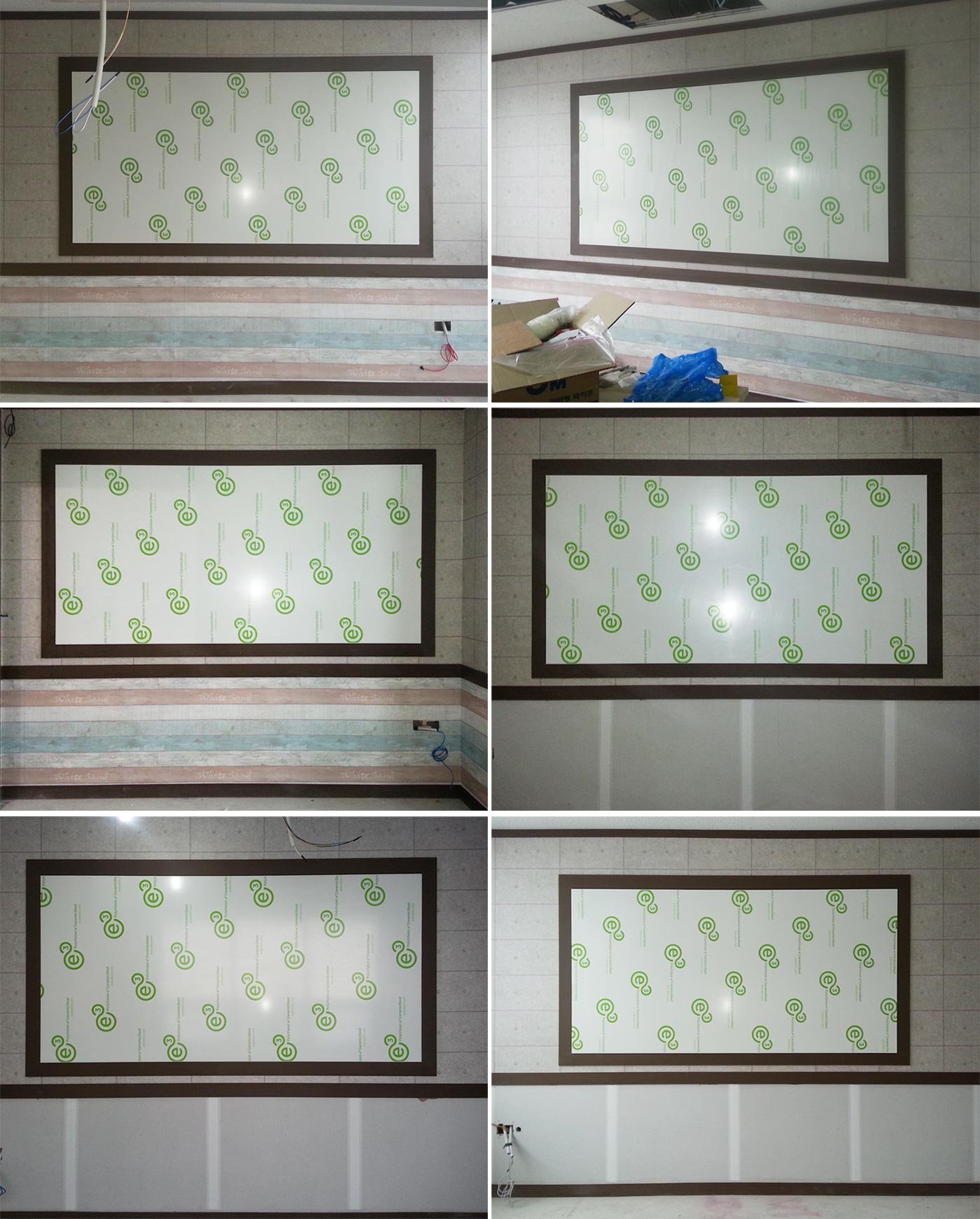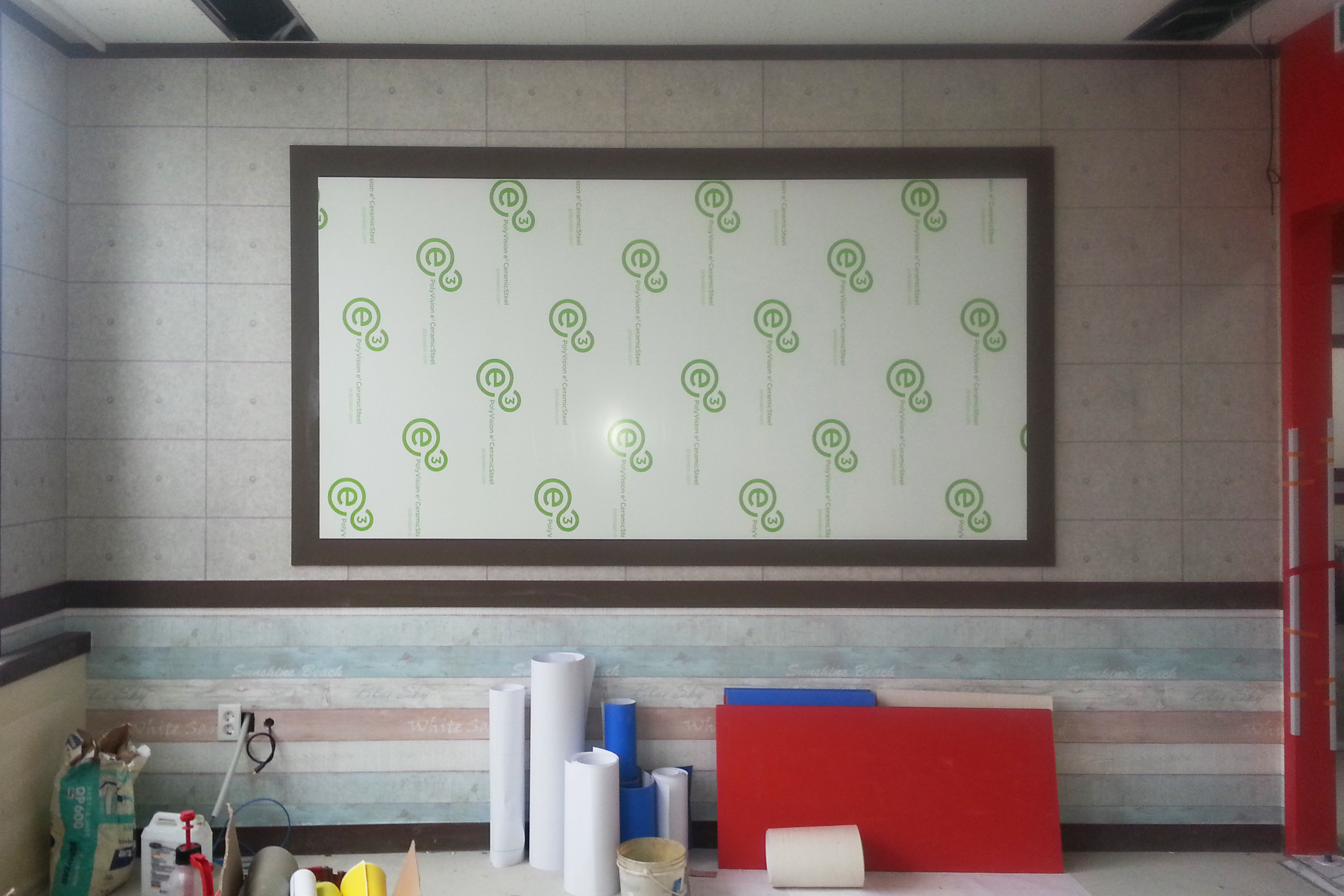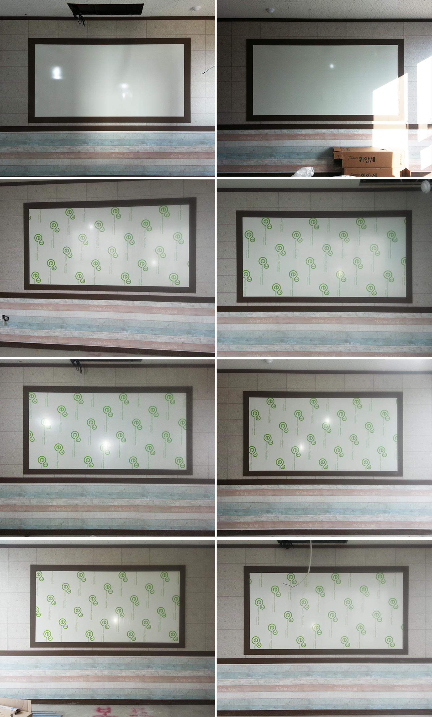 법랑칠판은 설치후 보호필름을 제거하기 전이므로 칠판면에 무늬가 보입니다