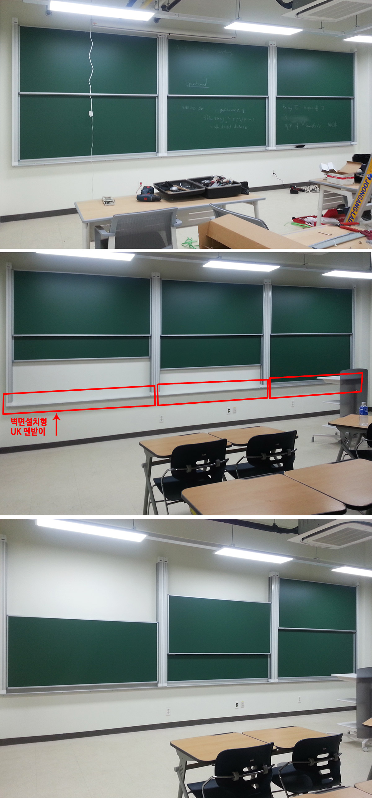 UK펜받이는 업다운보드 하단 벽면에 각각 부착해드렸습니다.