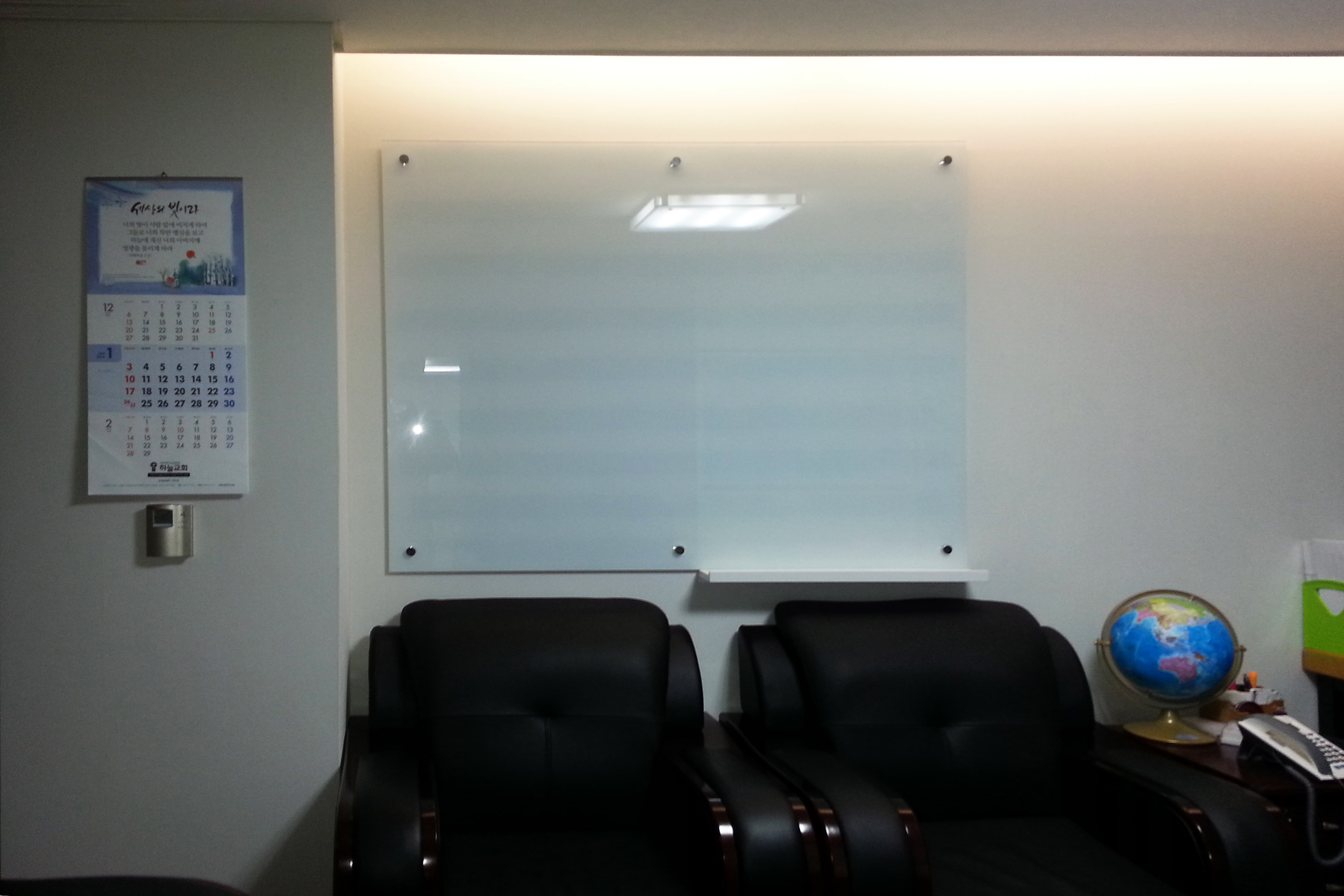 자석화이트유리 인테리어칠판 120*150 / 120*240 제품의 모습입니다.