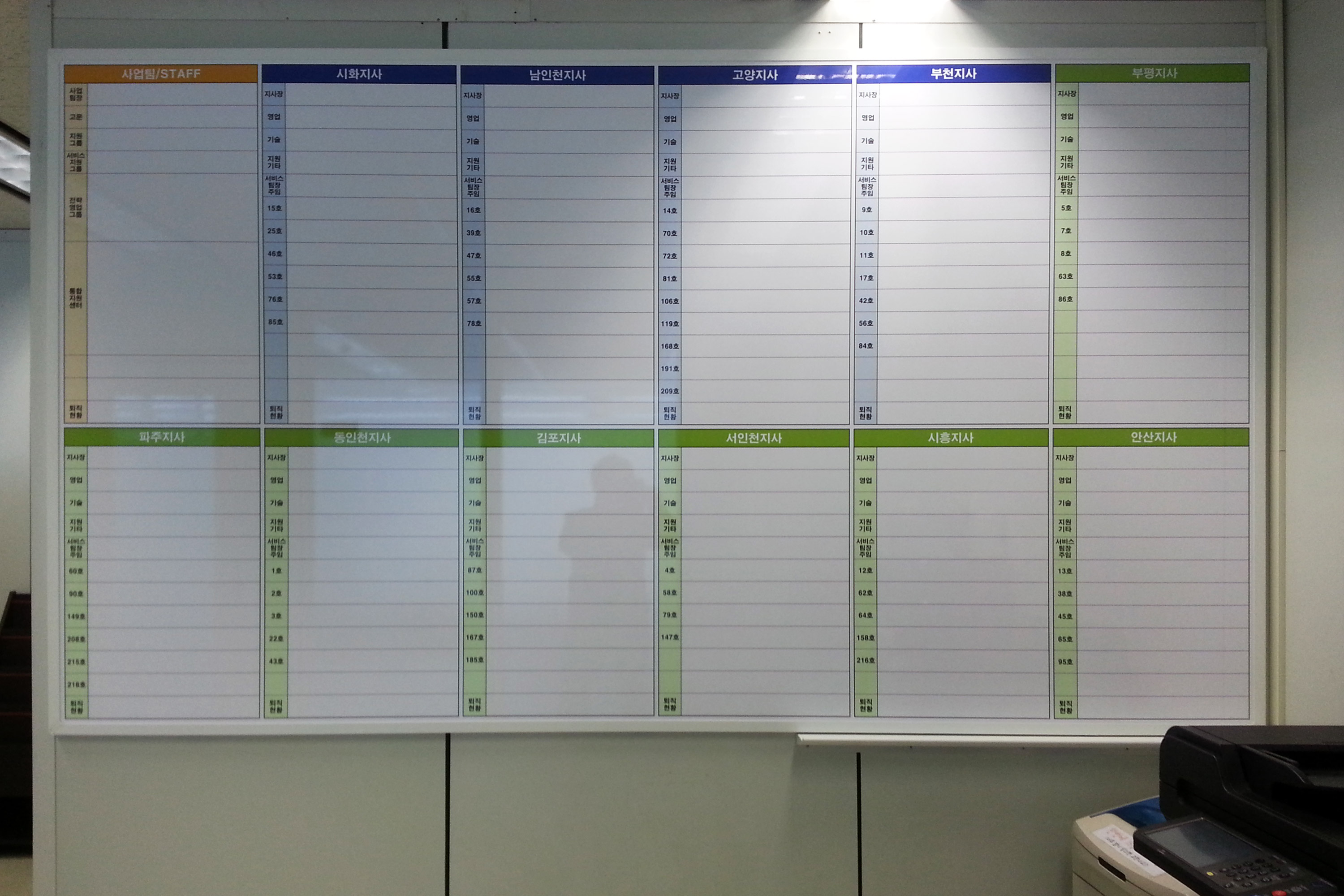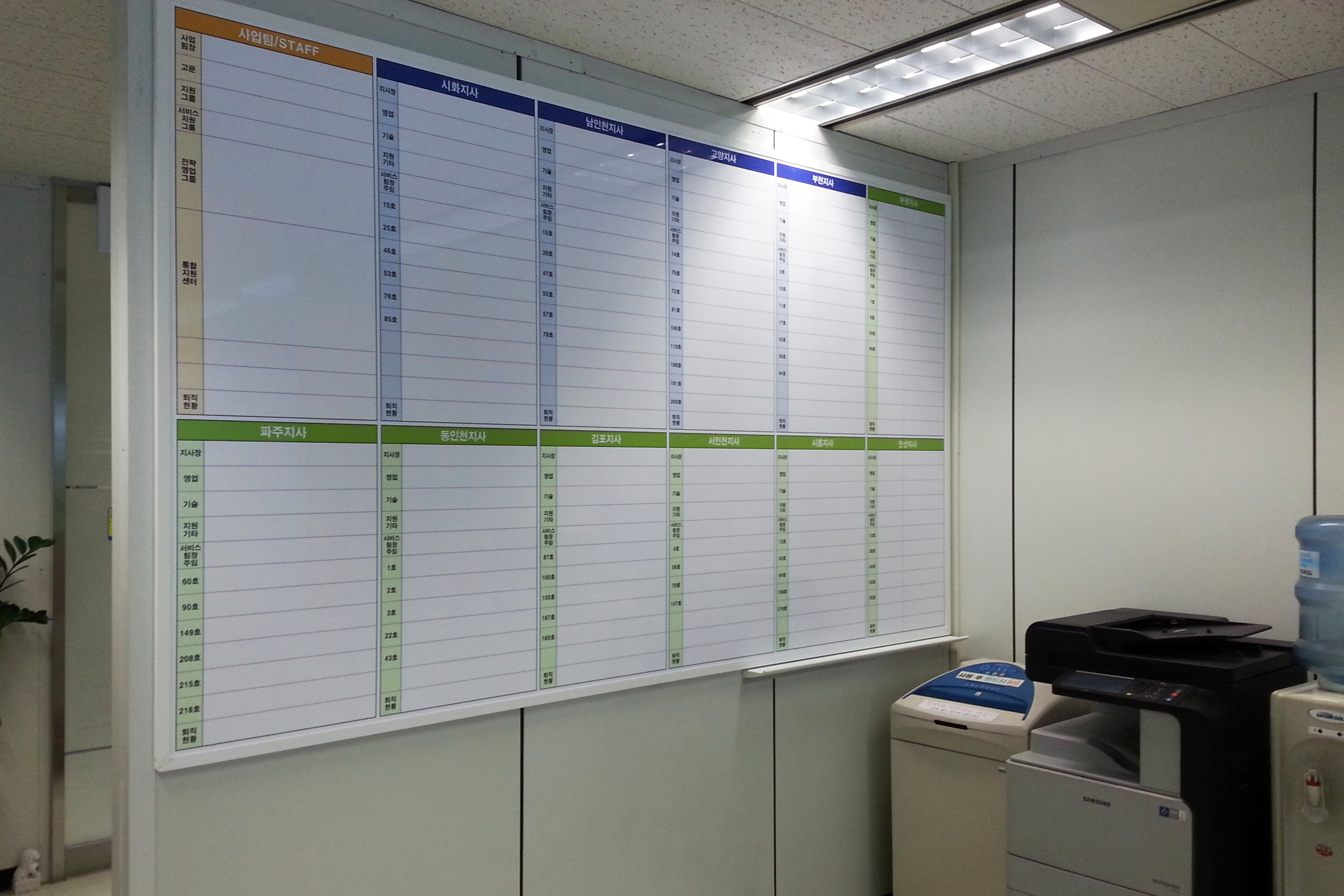 UK펜받이는 도안화이트보드의 하단 벽면에 부착해드렸습니다.