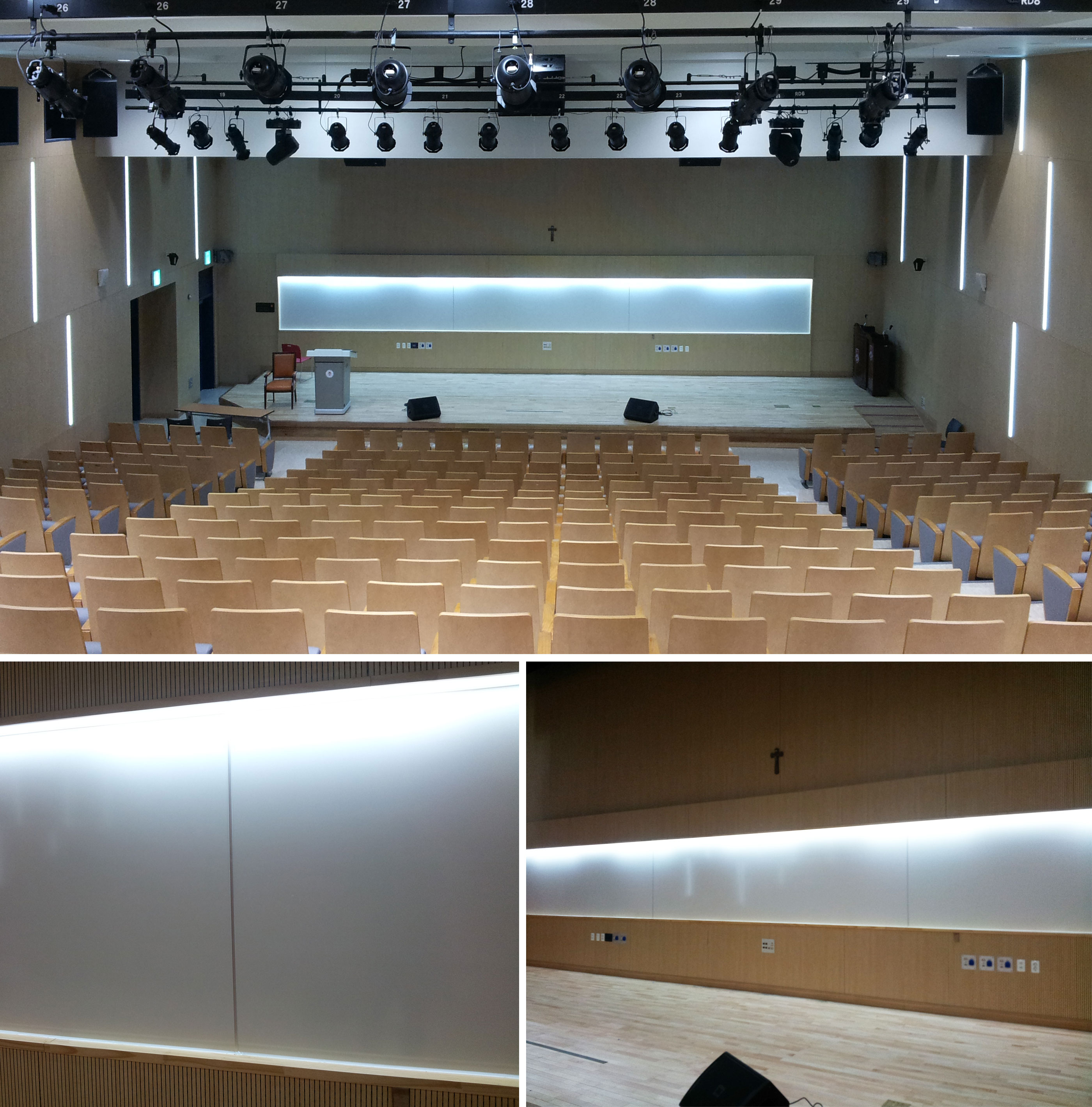 사진에서 보시는 것과 같이 세로 3등분으로 이음선이 있도록 설치했으며,