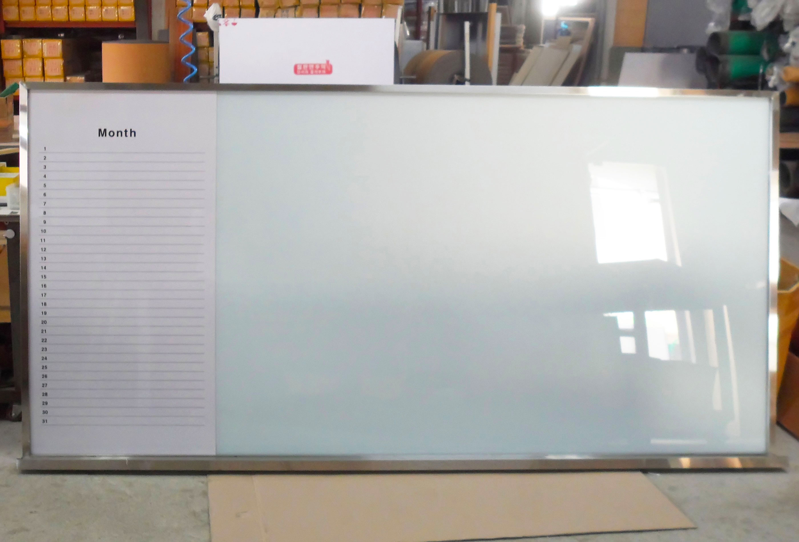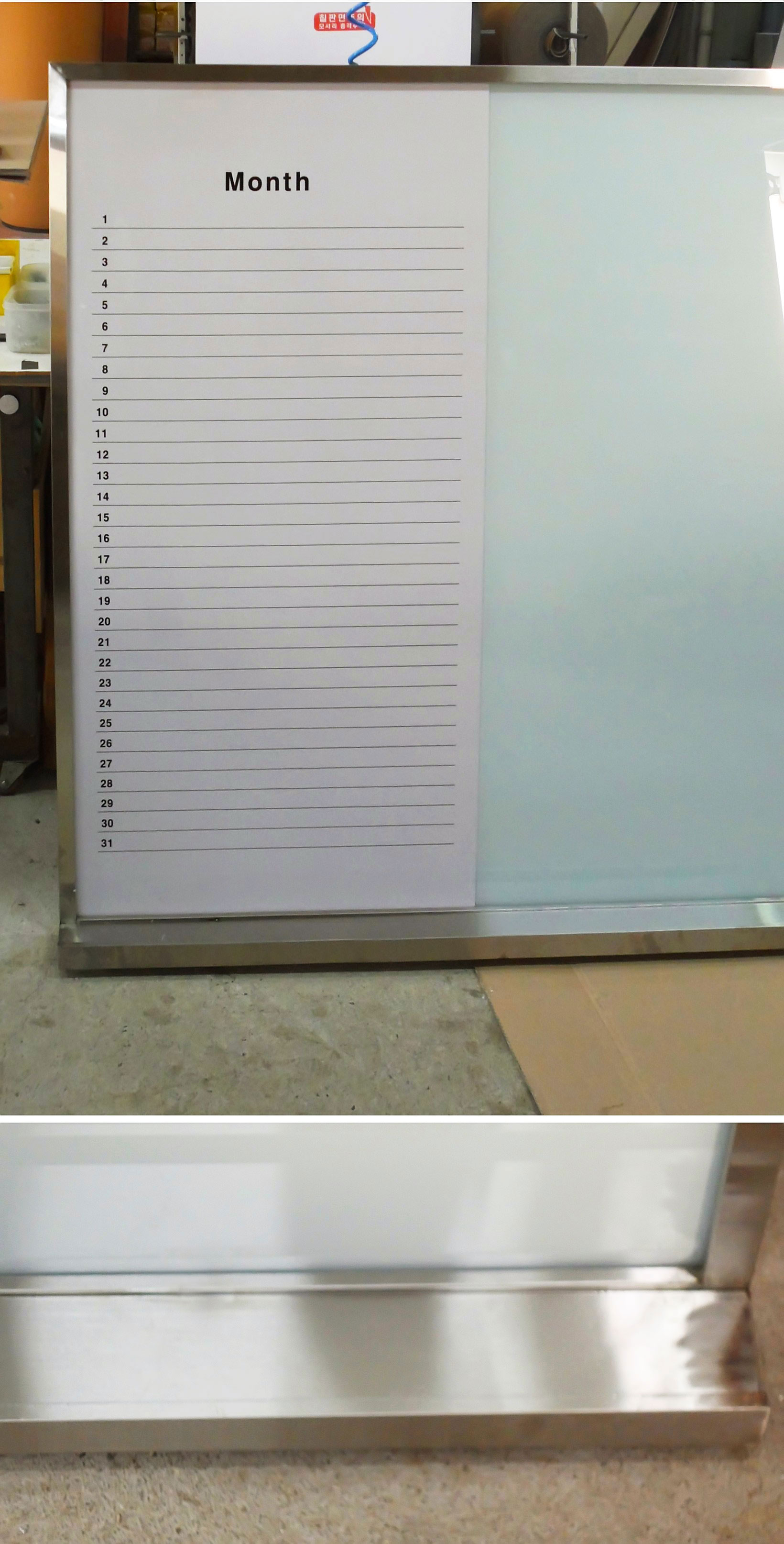 화이트도안 60 +자석 화이트유리180 스텐레스프레임 으로 제작해드렸습니다.
