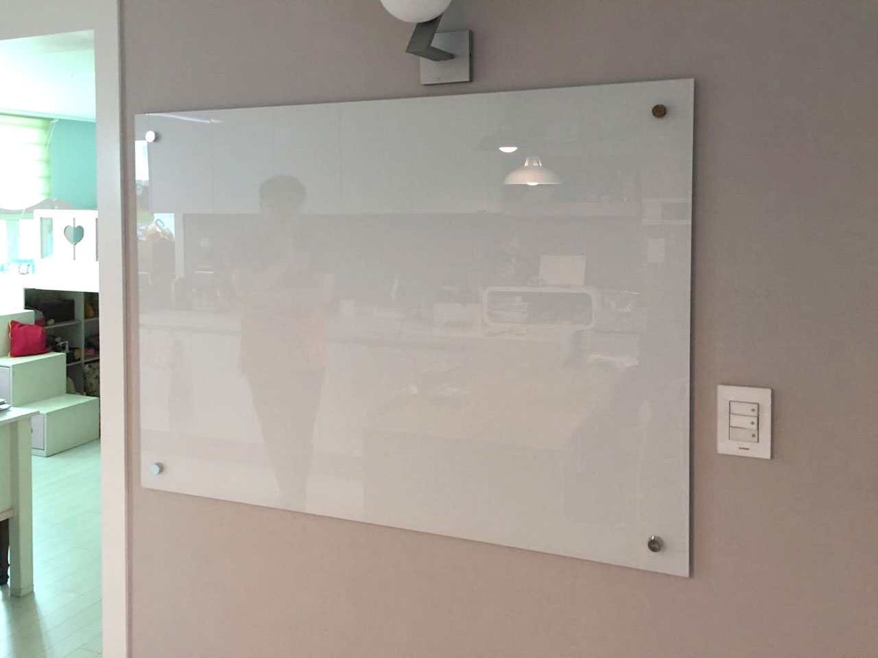 자석화이트유리 인테리어 칠판 90*120 제품의 모습입니다.