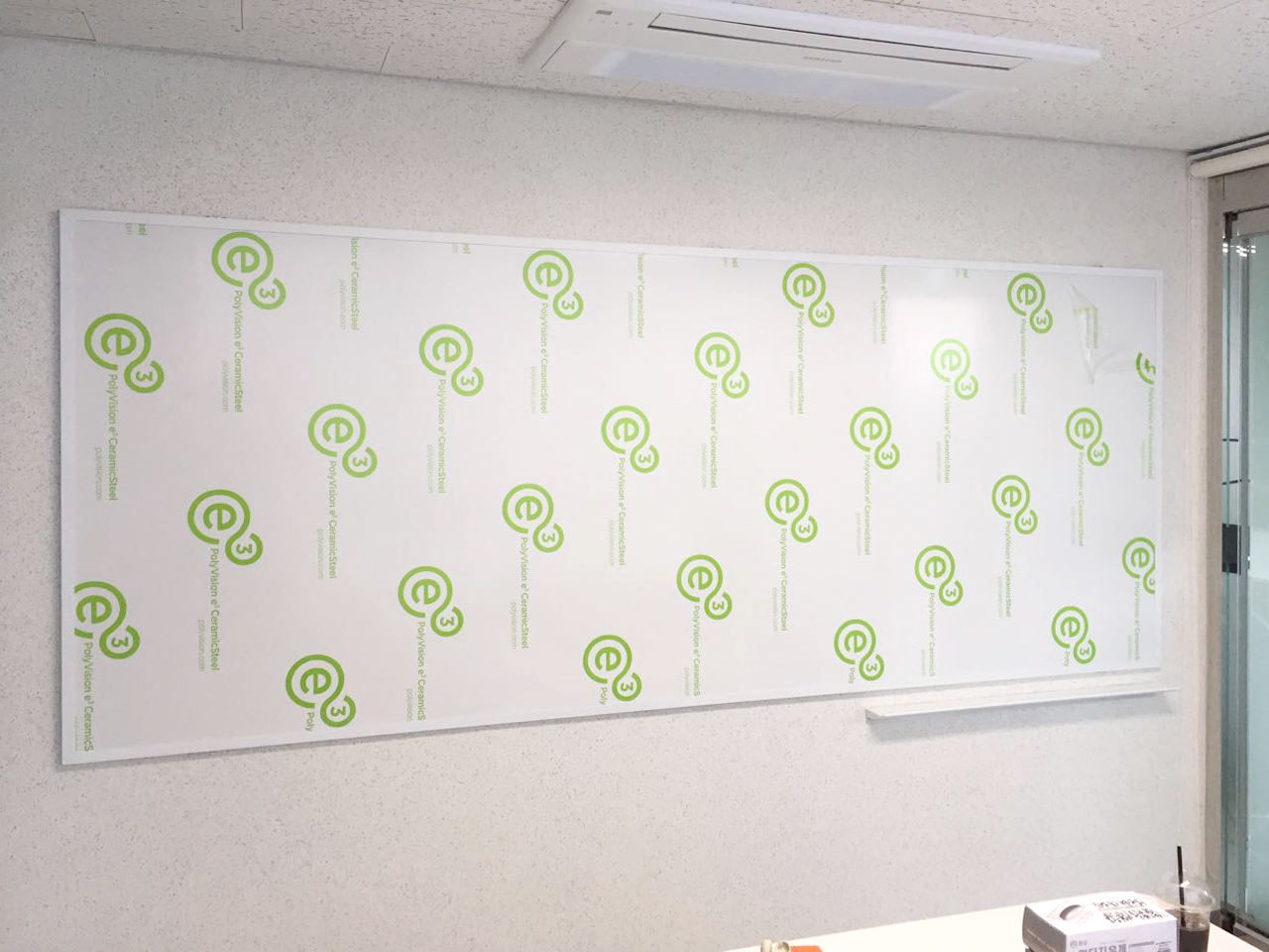 화이트 UK펜받이는 각각 100cm,50cm로 제작, 칠판의 하단 벽면에 부착해드렸습니다.