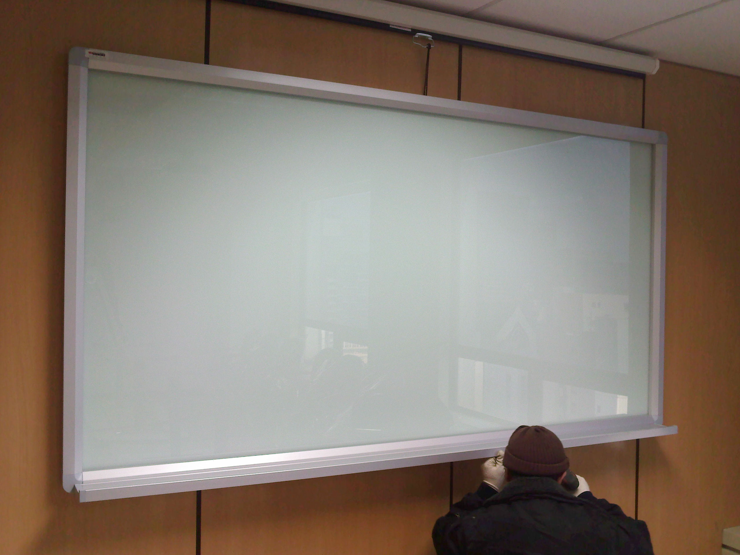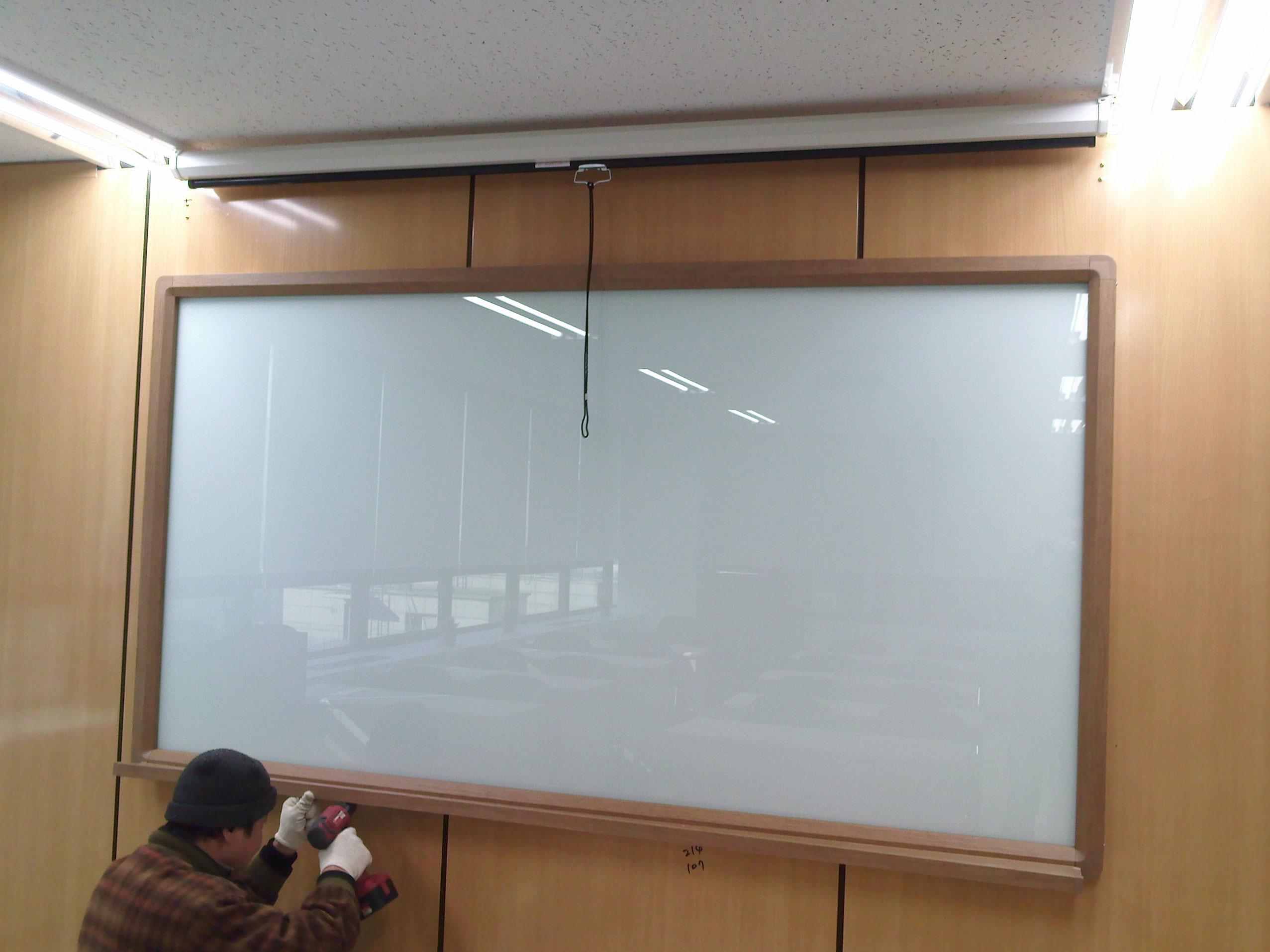 보드에 판서를 하다가 프로젝트사용시 스크린을 내려서 사용함.