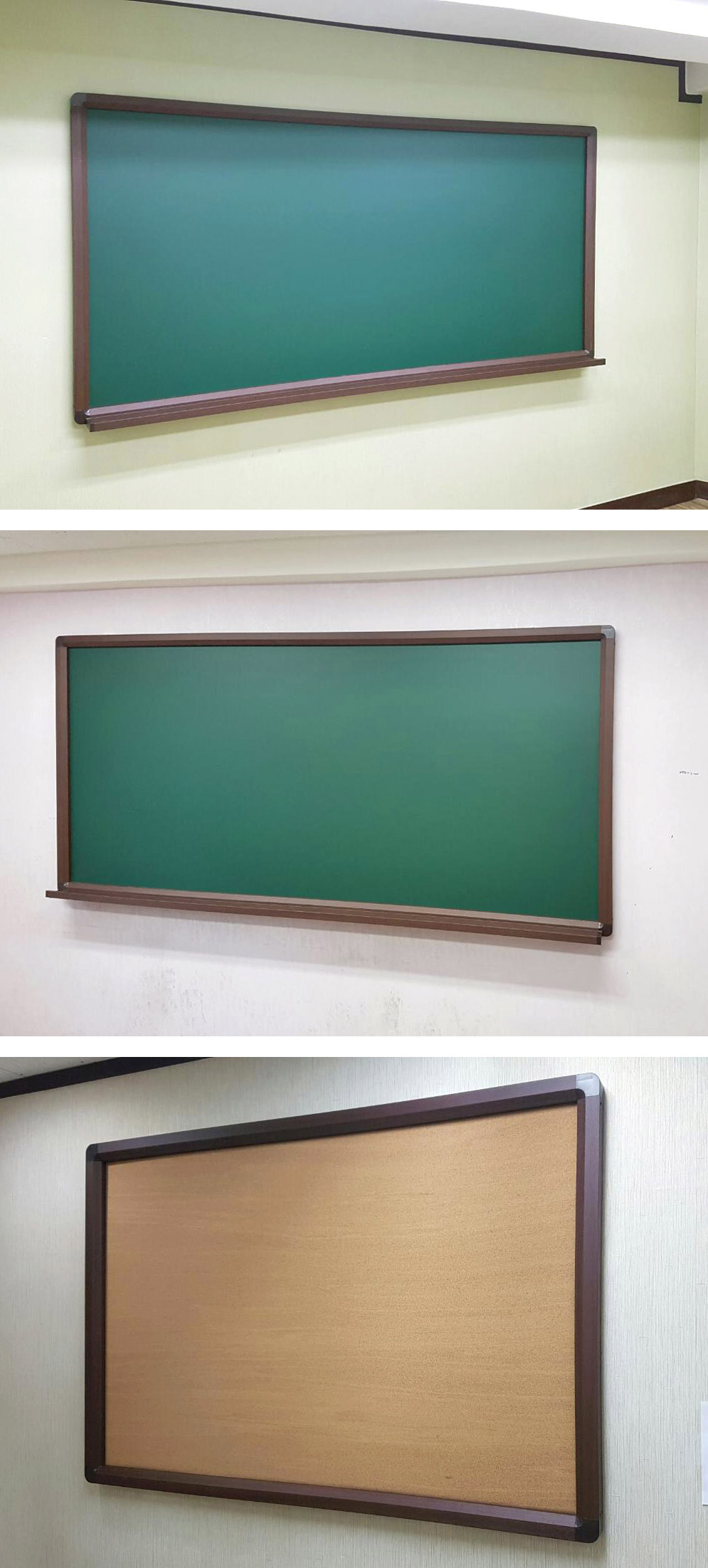분필(청) 월넛A/L 120*250 (3) / 코르크게시판 월넛A/L 100*150 제품의 모습입니다.