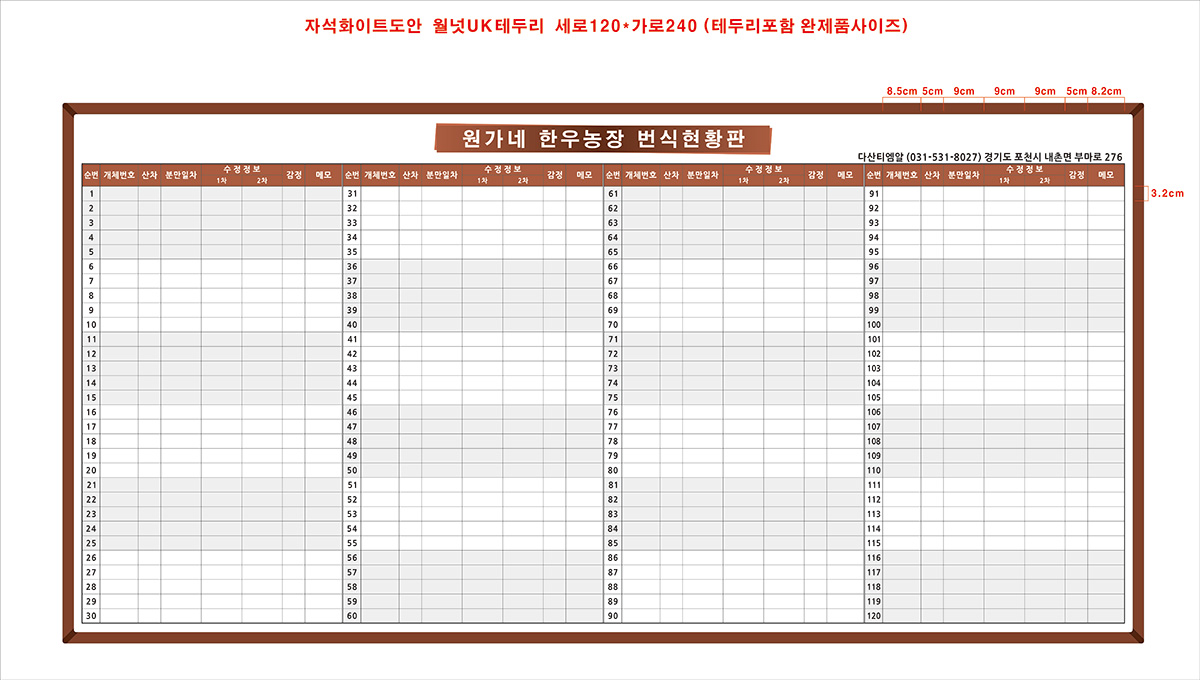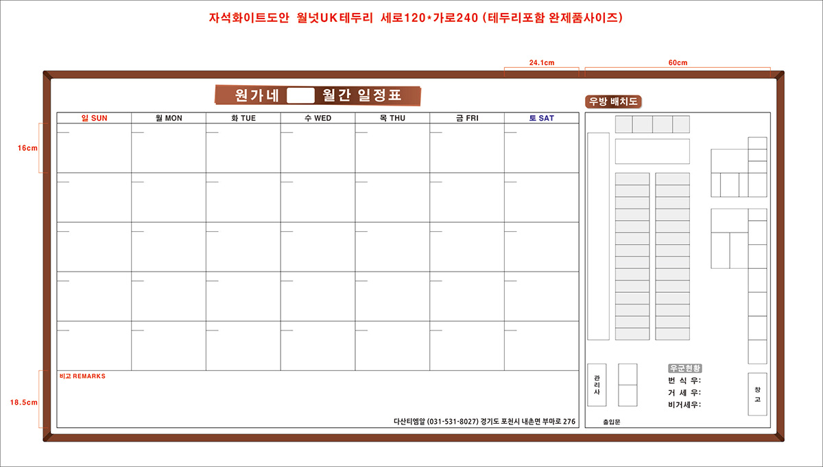 자석화이트도안 120*240 - 월간계획표/현황판 (다산농산영농조합)