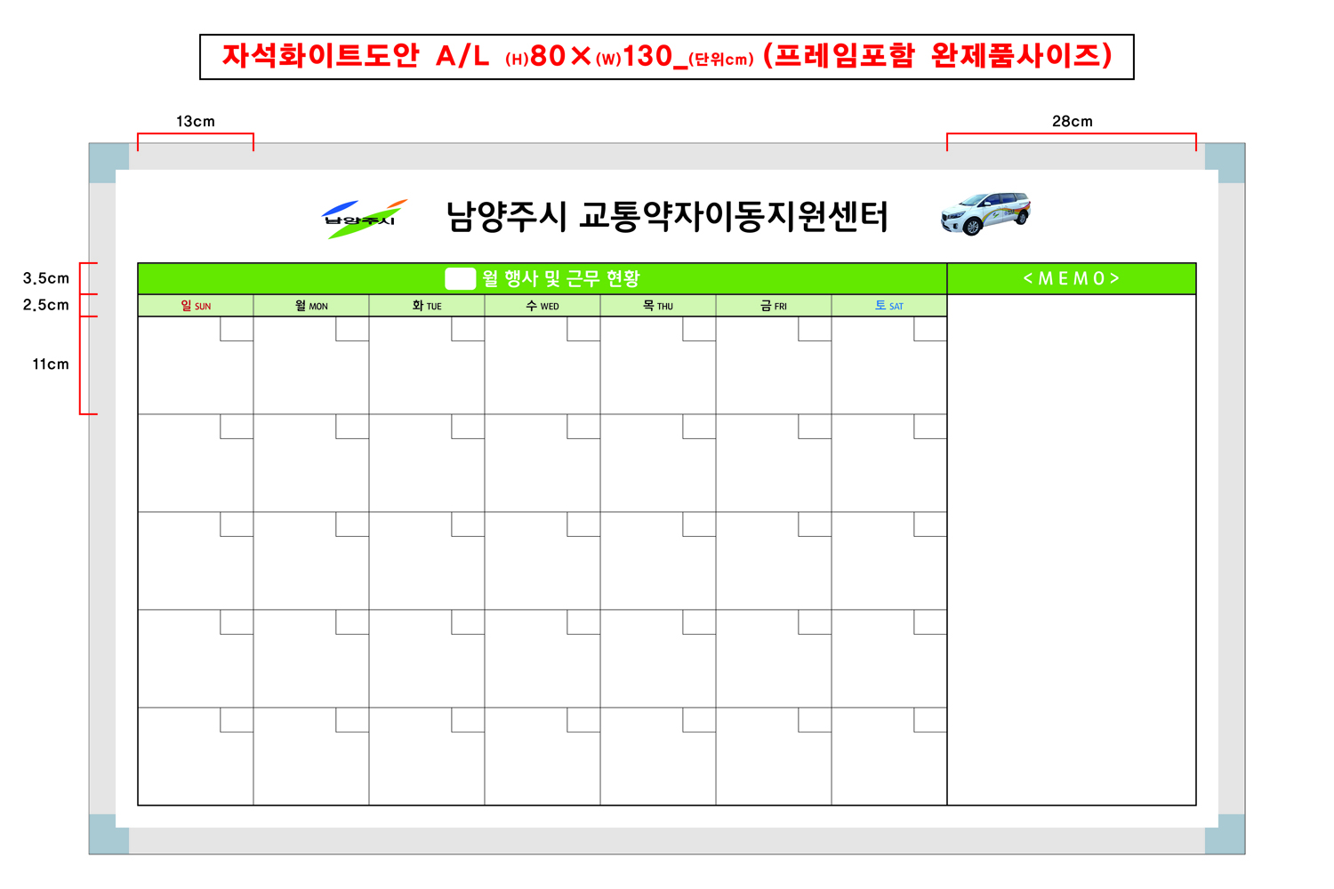자석화이트도안 일반A/L 80×130_남양주시교통약자이동지원센터 서브관리자5 2019-09-09 서브관리자5 0 2210 2019.09.09 07:03 제품 : 자석화이트도안 일반A/L사이즈: 80×130내용 : 남양주시교통약자이동지원센터